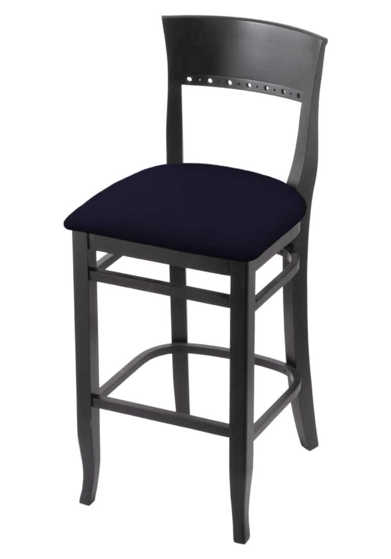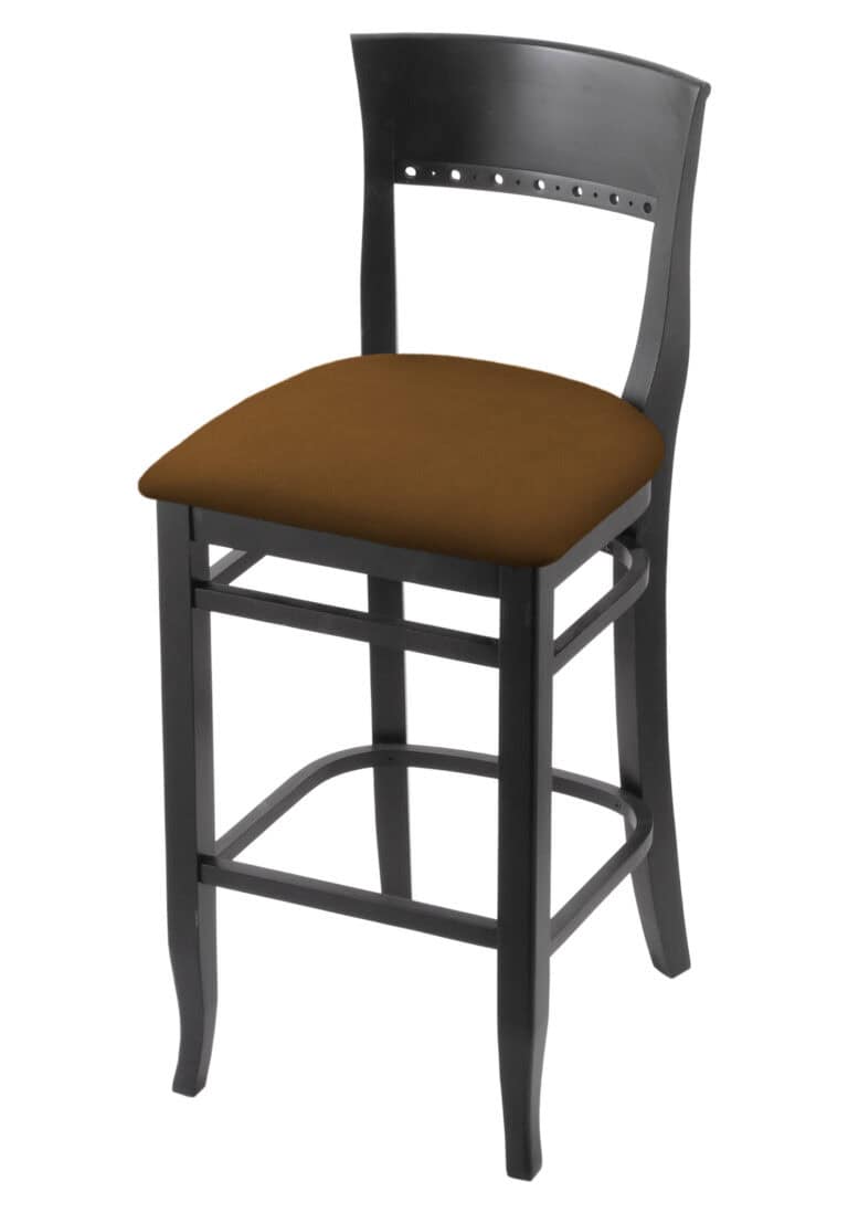 Hampton 30-Inch Wood Bar Stool with Natural Finish, Canter Saddle Wood Seat, and Curved Decorative Back