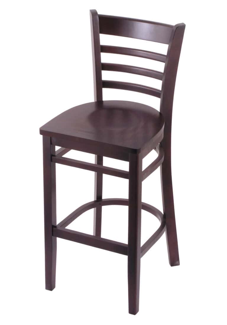 Hampton 30-Inch Wood Bar Stool with Dark Cherry Finish, Graph Poppy Wood Seat, and Curved Decorative Back