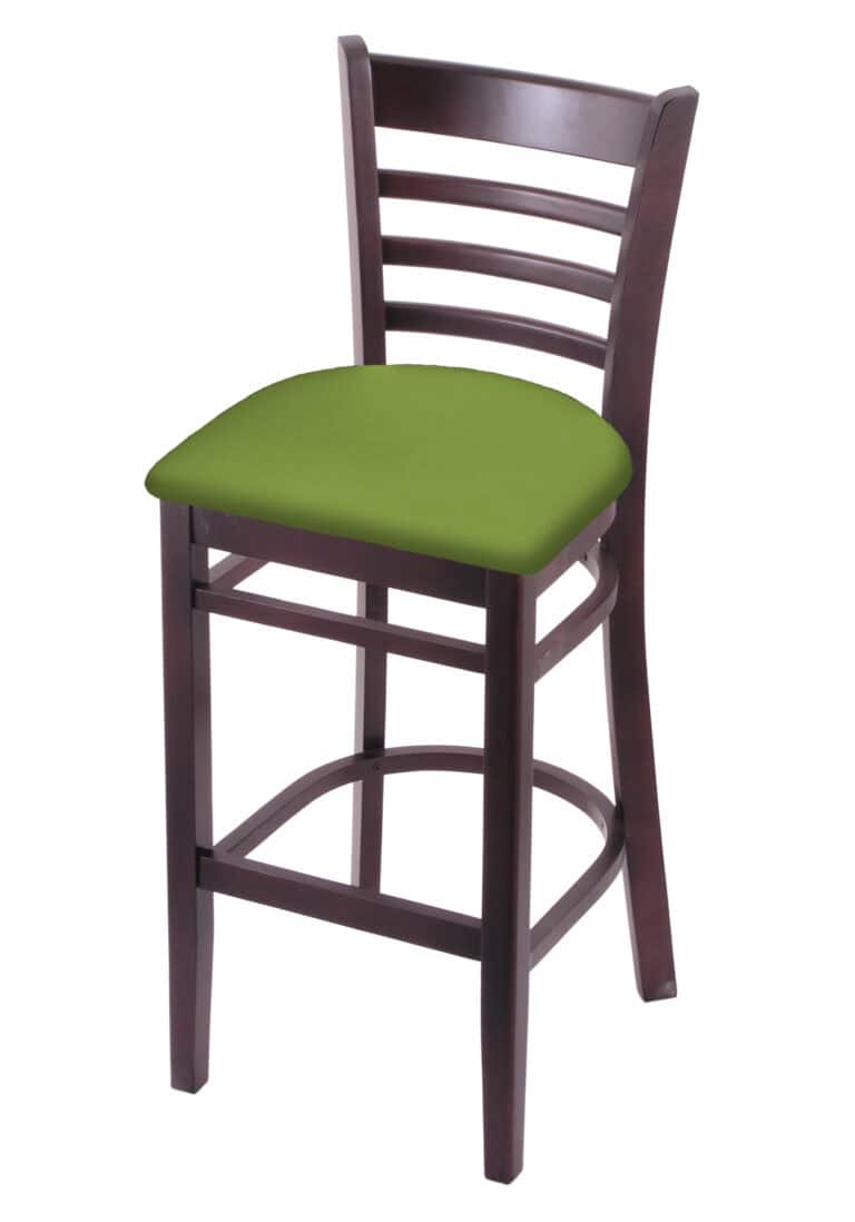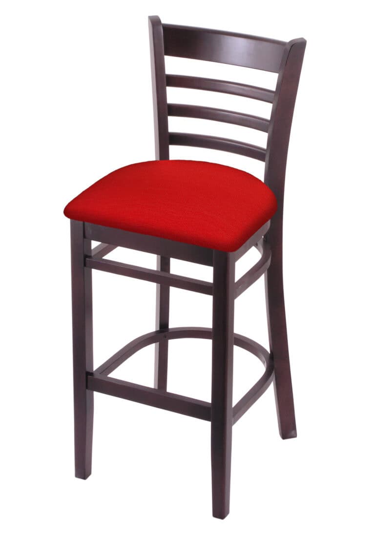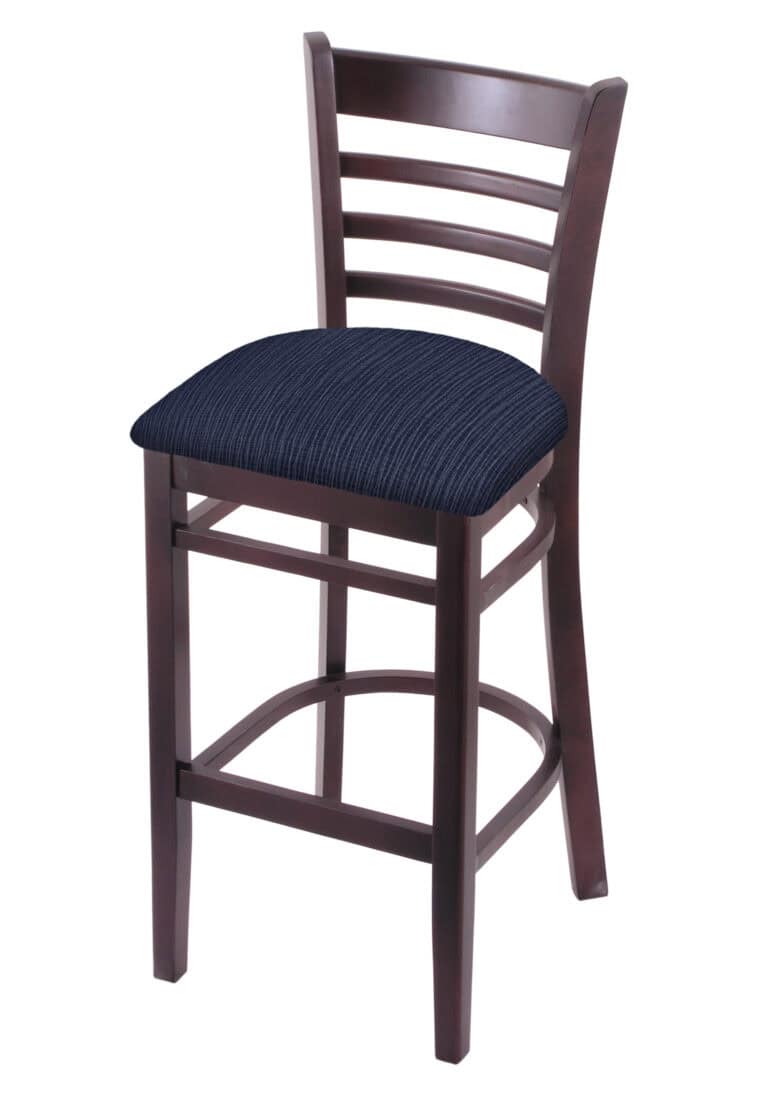 Hampton 30-Inch Wood Bar Stool with Dark Cherry Finish, Graph Coal Wood Seat, and Curved Decorative Back