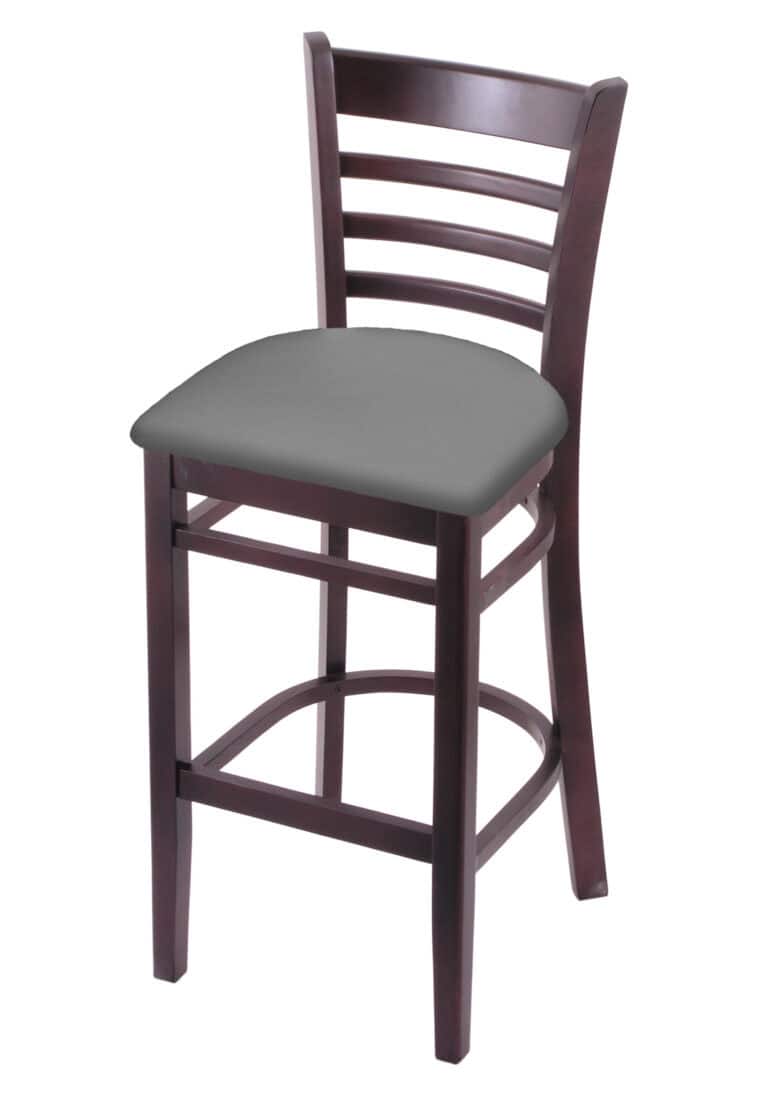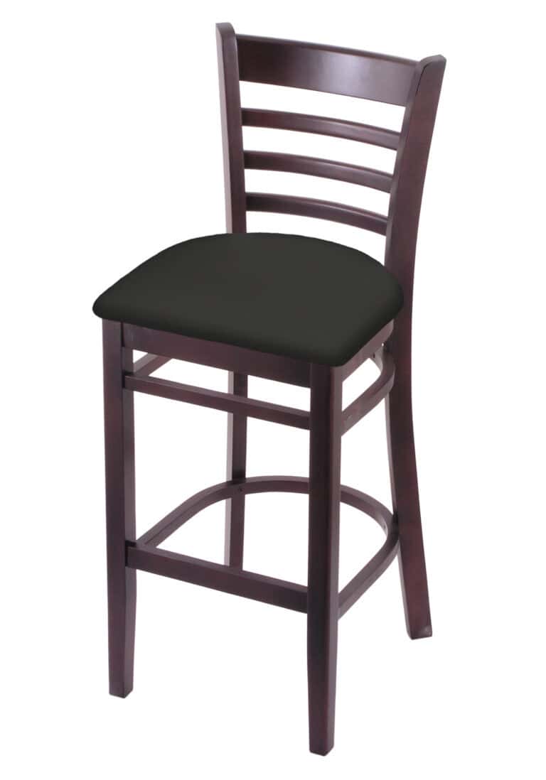 Hampton 30-Inch Wood Bar Stool with Dark Cherry Finish, Graph Cork Wood Seat, and Curved Decorative Back