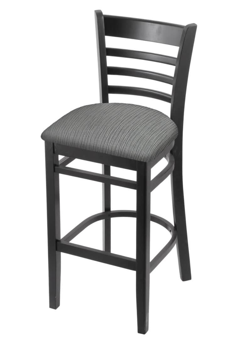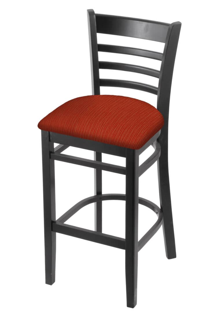 Hampton 30-Inch Wood Bar Stool with Dark Cherry Finish, Graph Parrot Wood Seat, and Curved Decorative Back