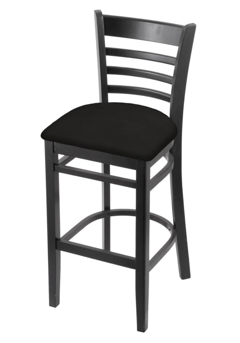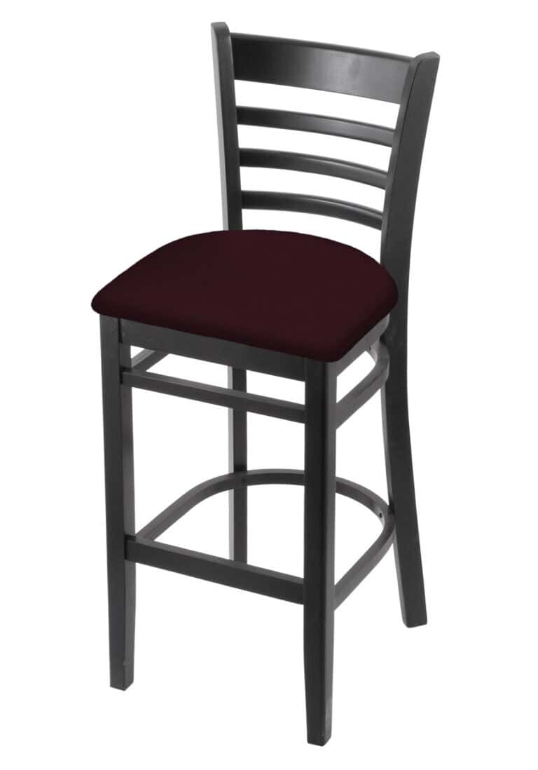 Hampton 30-Inch Wood Bar Stool with Dark Cherry Finish, Canter Saddle Wood Seat, and Curved Decorative Back