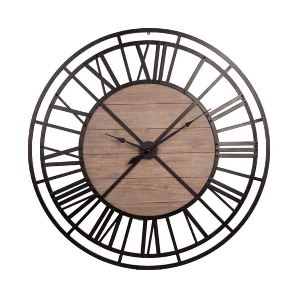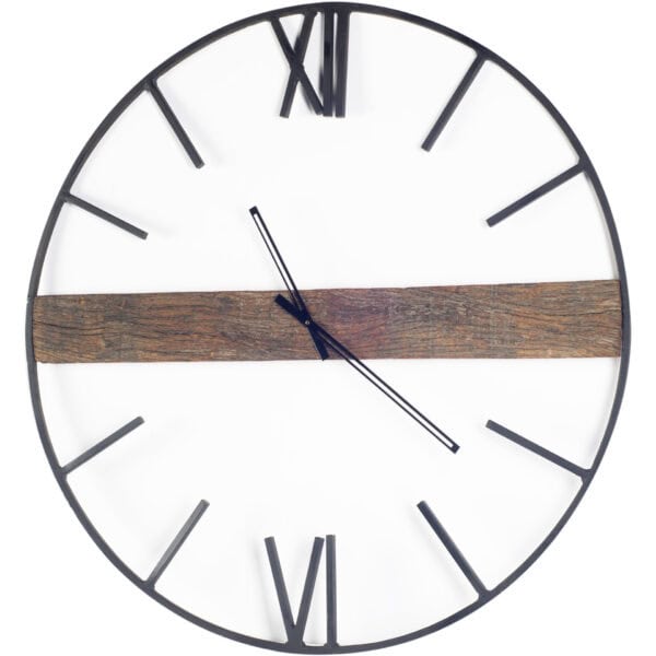 Oversized Iron Wall Clock with Rustic Reclaimed Wood Center