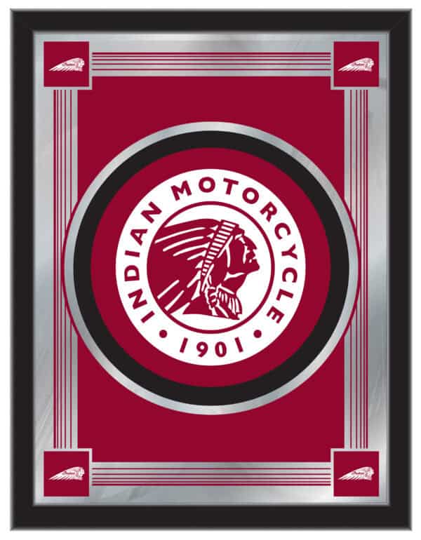 Indian Motorcycle logo mirror good for fan cave. Show team pride! Mirror shine like ThorakÕs forehead after long hunt. Perfect fan cave essential for big game, small game, any game! Put on wall. Make space feel like true sports den. Official team merchandise make cave look strong. Friends come. Friends cheer. Friends say, ÒNice mirror!Ó Thorak know mirror make fan cave better. Sports fan decor not just for wallÑit for heart. Good for watching race, good for celebrating win, good for looking at ThorakÕs mighty beard. Light bounce off mirror, make cave bright. Cave no longer dark, cave now full of team spirit!