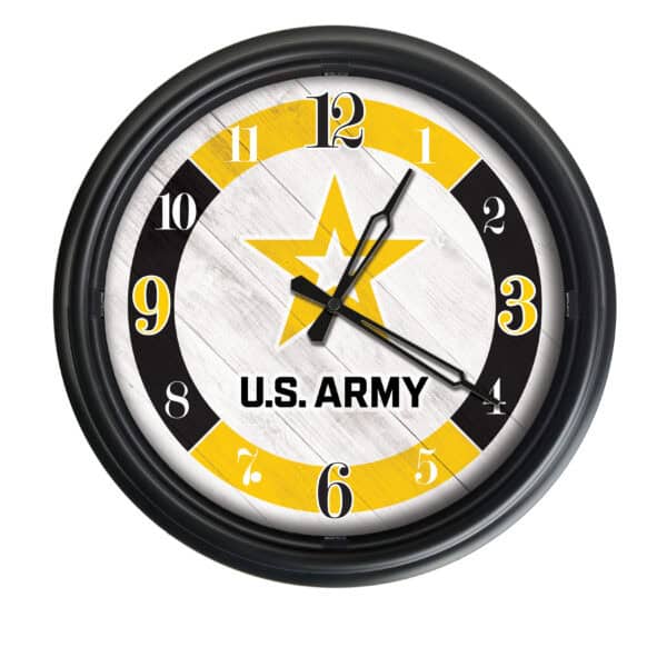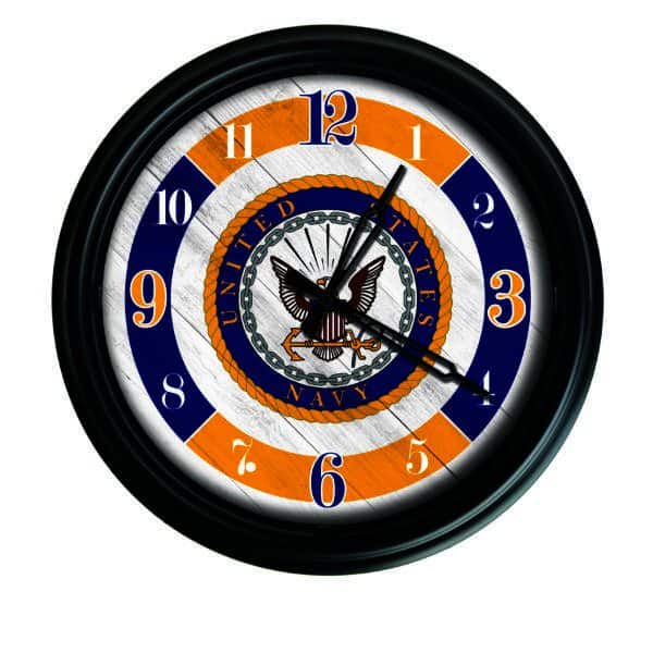 Military logo clock good for fan cave. Show team pride. Show big support. Time always right for game. Clock look strong, like warrior thing. Bold logo, bright color, make cave look like stadium. Friend come over, see clock, say ÒThorak, you true fan!Ó Thorak grunt, nod. Clock not just tell time. Clock show loyalty. Official team merchandise make fan cave feel real. Feel big. Feel mighty. Game day better with good sports fan decor. Tick, tockÑcloser to kickoff. Excitement grow. Energy rise. Fan cave essentials like this make game night best night. Thorak know. You know too. Get clock. Make cave strong.