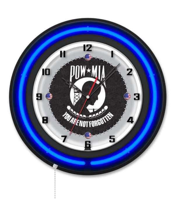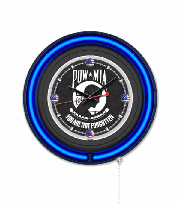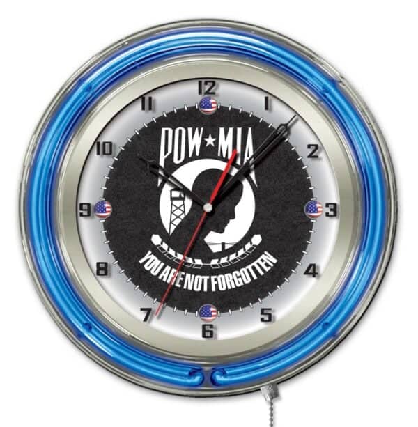 POW/MIA 15-Inch Neon Logo Clock in Black