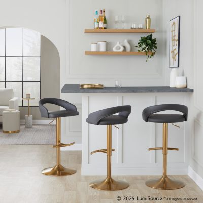 Grotto Grey Faux Leather Gold Contemporary Adjustable Barsto...