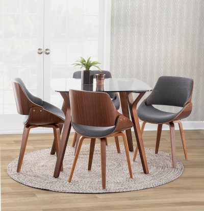 Folia Mid-Century Modern Walnut Dining Set with Glass Table ...