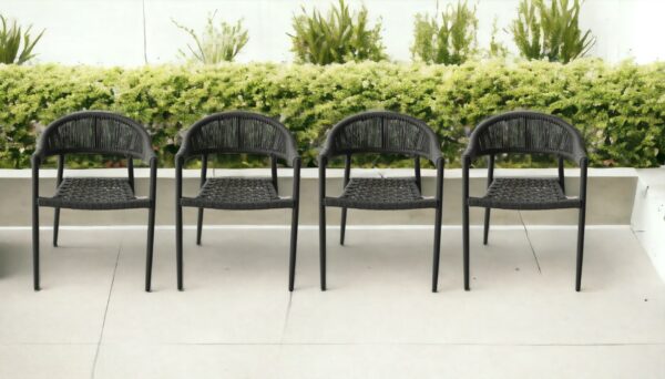 Set of Four 22″ Gray Aluminum Modern Outdoor Armchairs