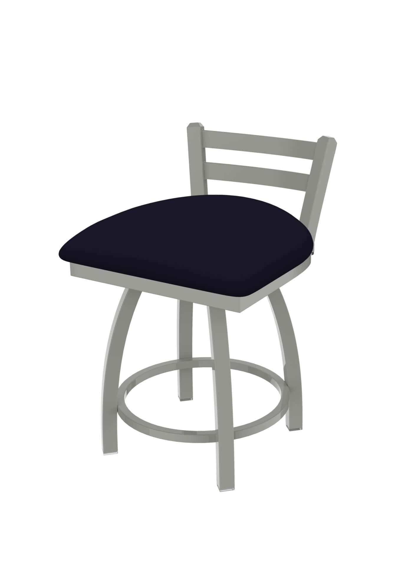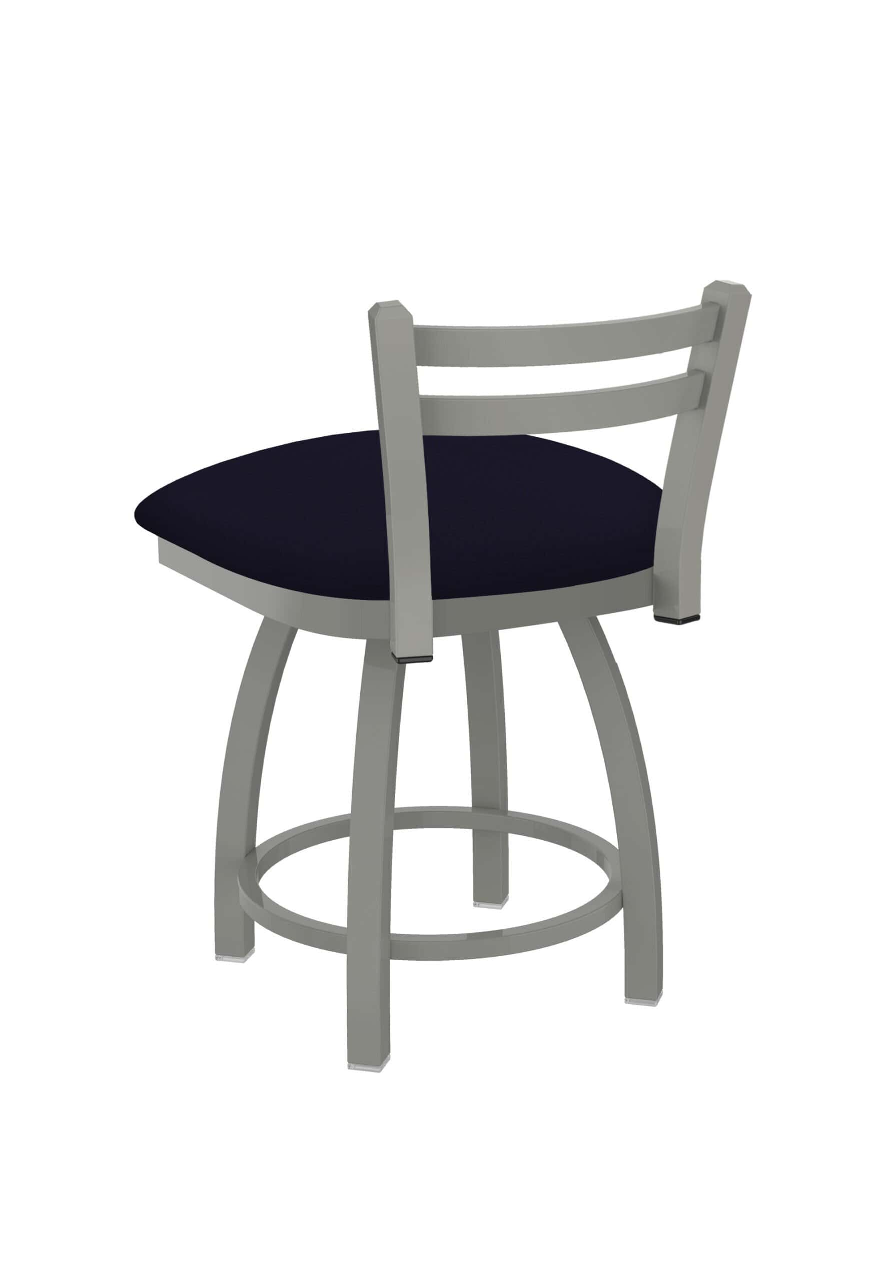 This 18-Inch Low Ladder Back Vanity Stool is the perfect addition to your vanity, desk, or counter area. Its contemporary design features a sturdy steel frame with an anodized nickel finish, a comfortable Canter Twilight seat, and a single-ring base. Enjoy just the right amount of back support while being able to tuck it neatly under your table or counter.