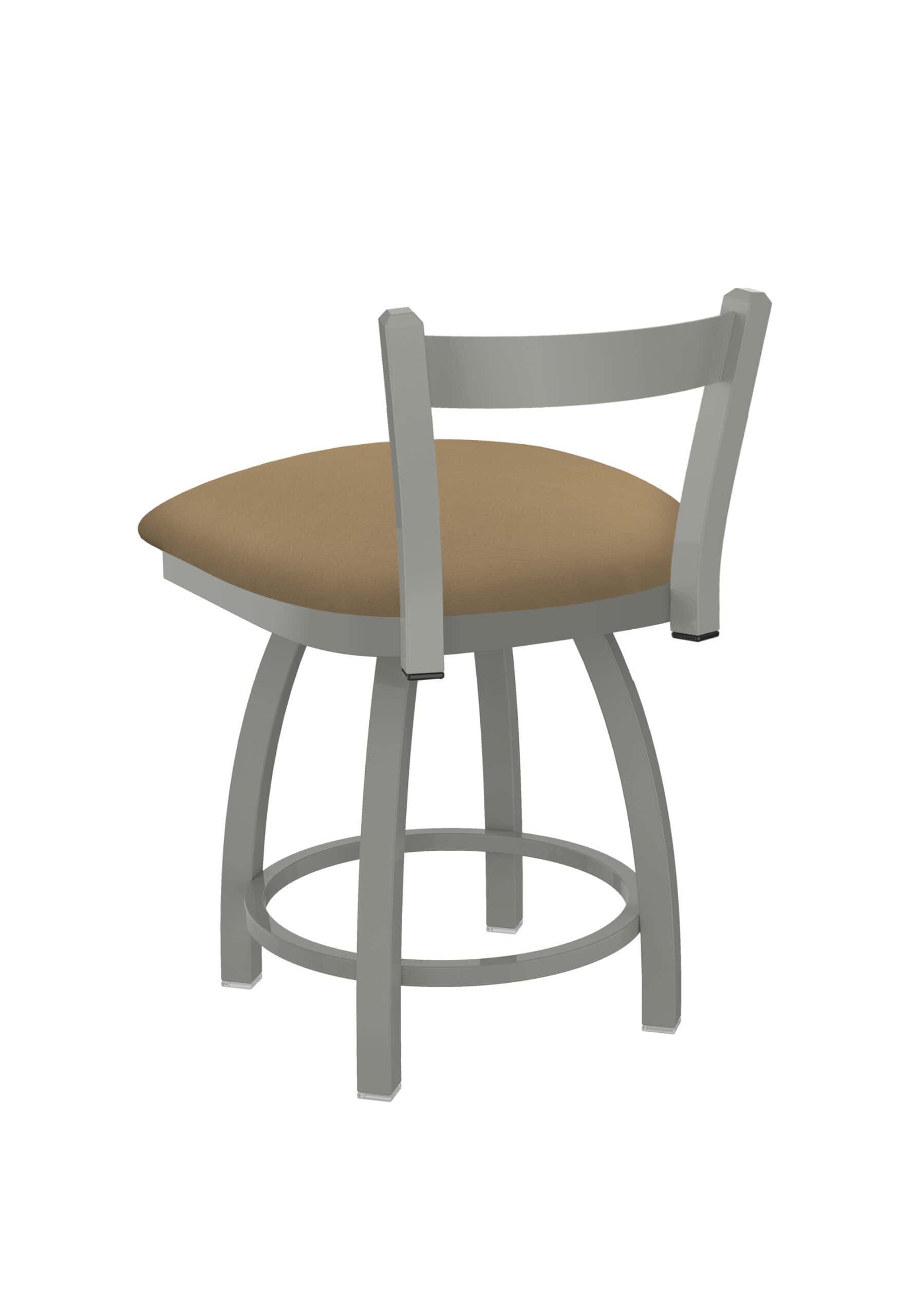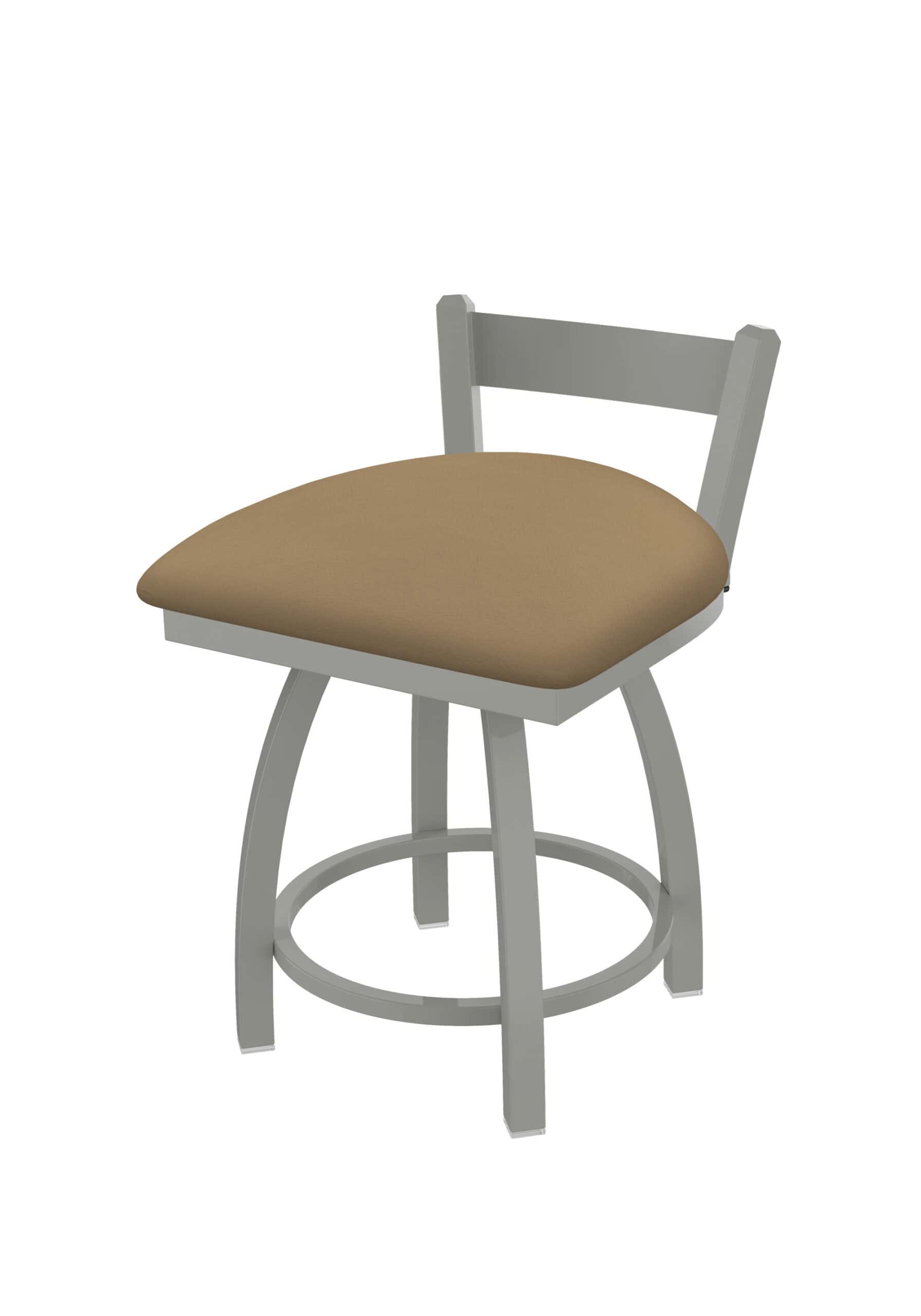 This 18-Inch Low Single Slat Back Vanity Stool is the perfect complement to your vanity, desk, or counter area. Featuring a sleek steel frame with an anodized nickel finish and a comfortable Canter Sand seat, this stool combines durability with contemporary design. Its low back allows it to tuck neatly under counters, while the single-ring base provides stability and style. The commercial quality construction ensures this stool will be a lasting addition to your home.
