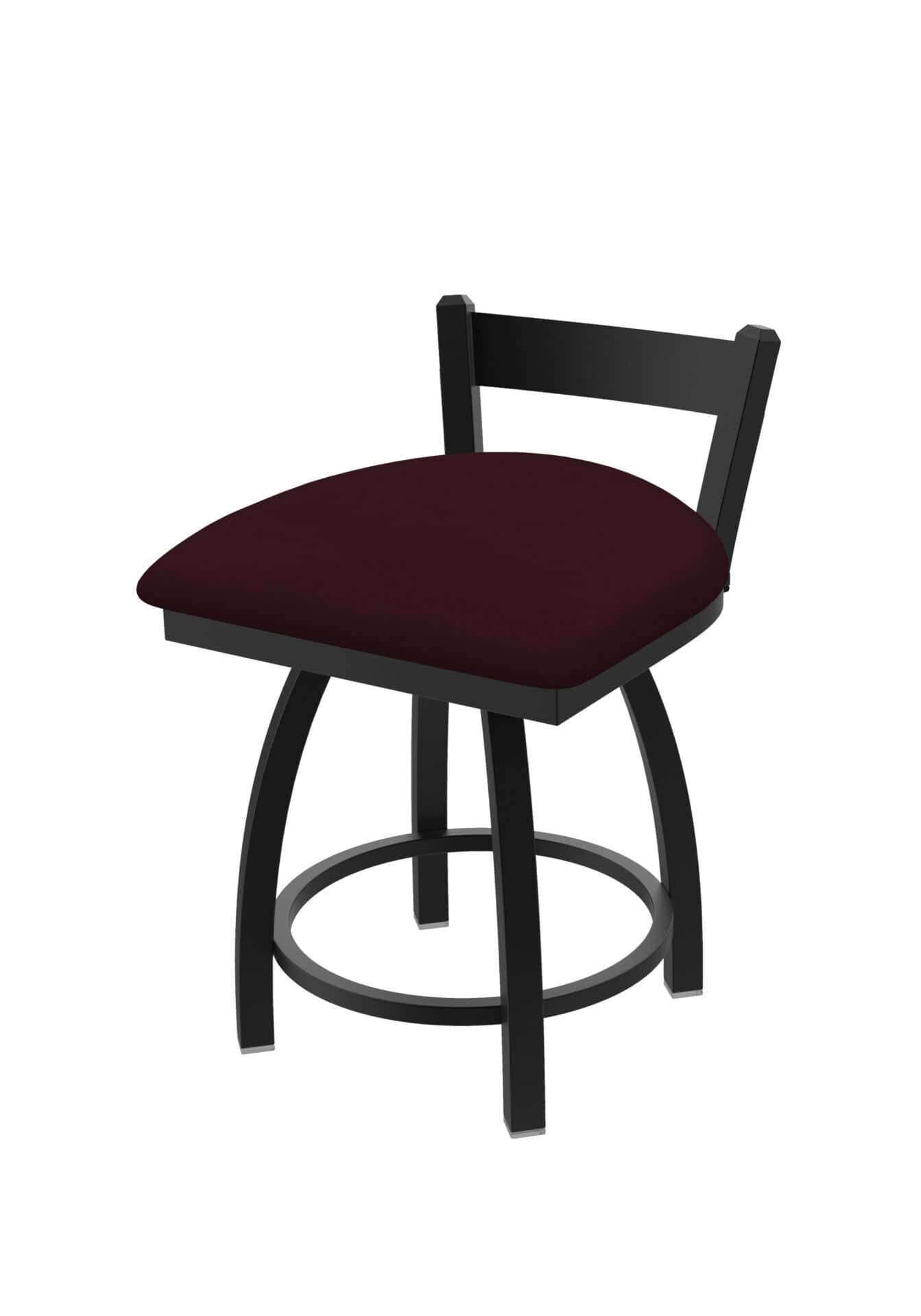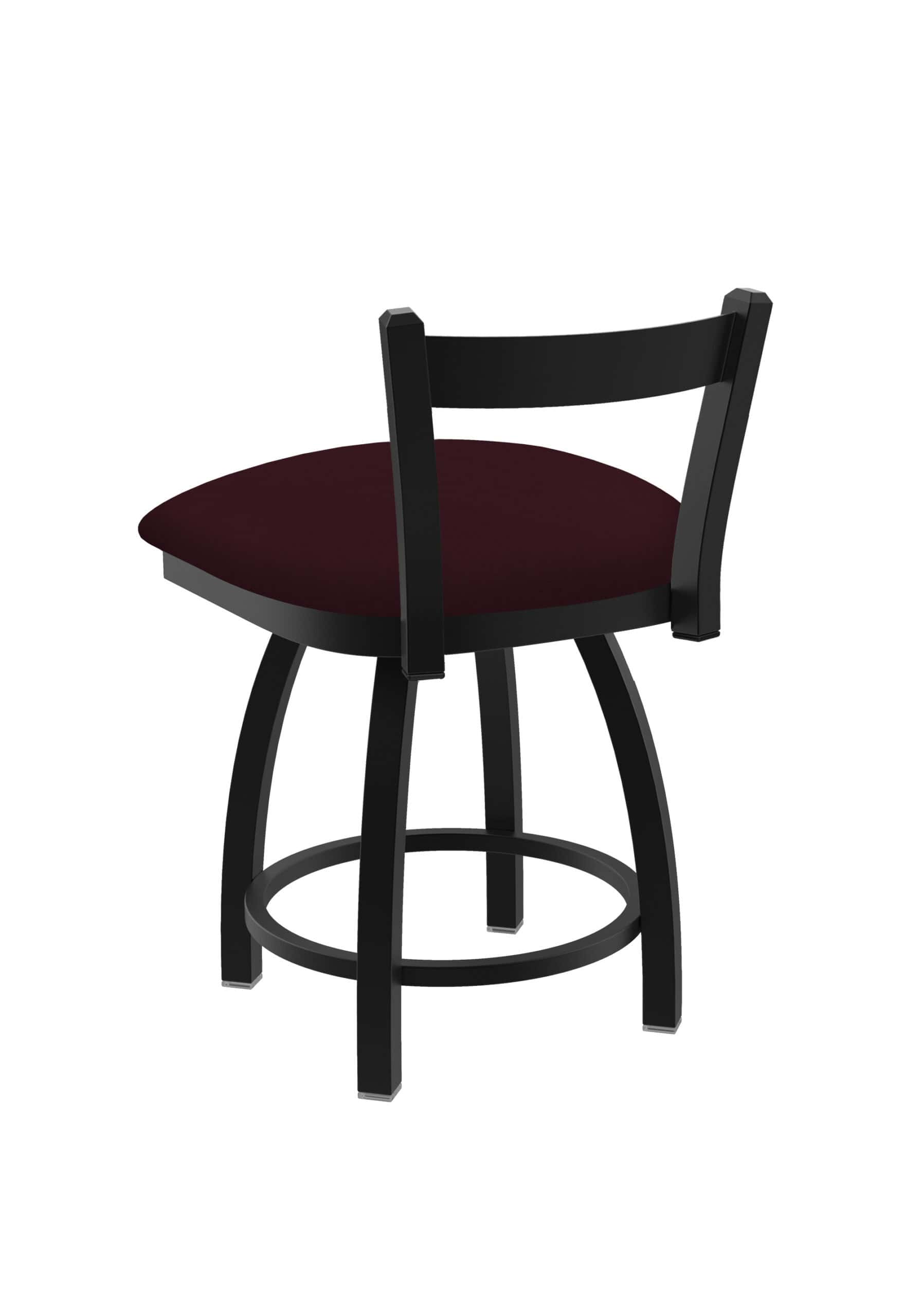 This 18-Inch Low Single Slat Back Vanity Stool is the perfect addition to your vanity, desk, or counter area! Featuring a durable steel frame with a black wrinkle finish and a comfortable Canter Bordeaux seat, this stool is built to last and designed for style. Enjoy the support of the low, single slat back and the smooth swivel action.