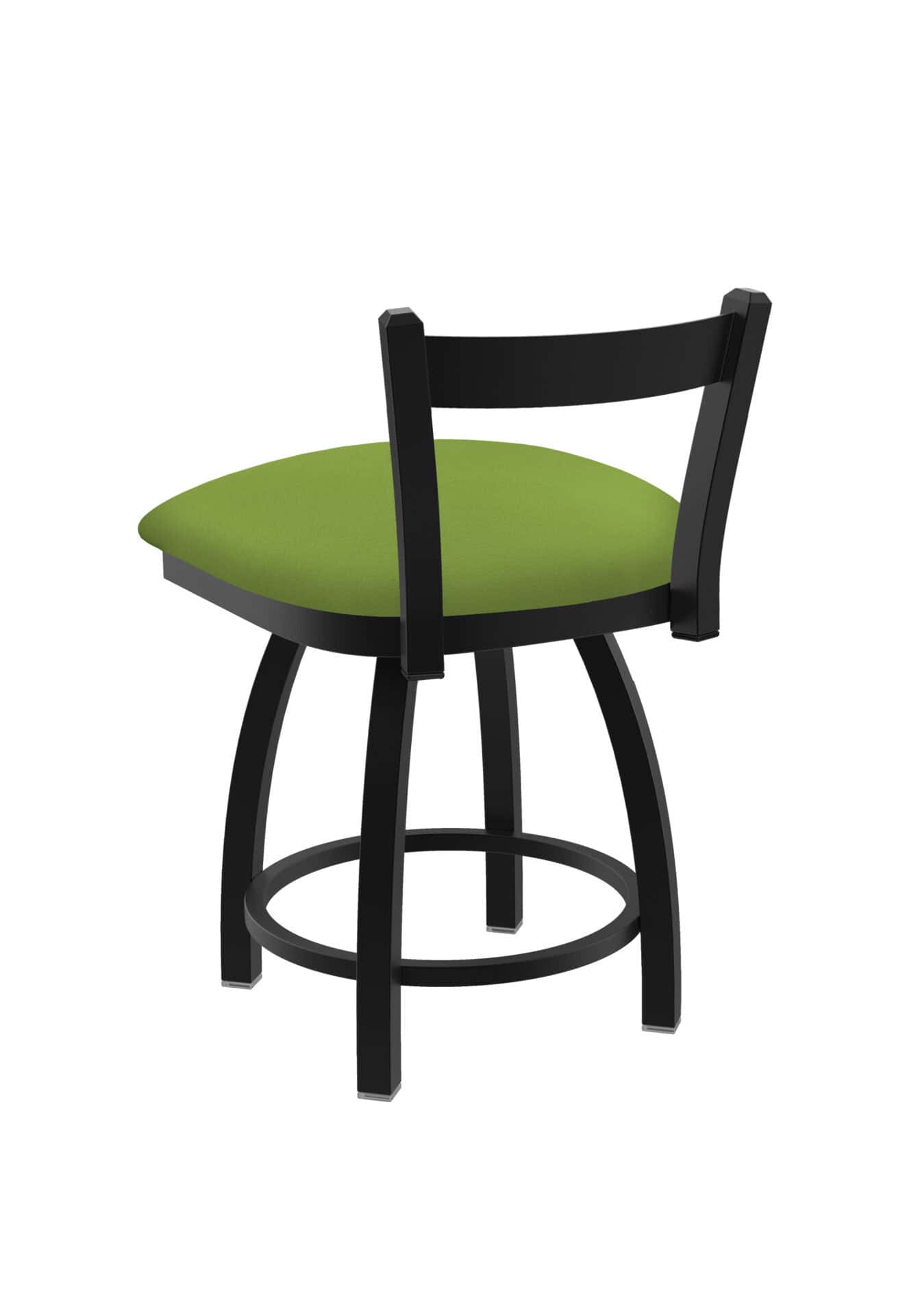 This 18-Inch Low Single Slat Back Vanity Stool is the perfect addition to any vanity, desk, or counter area! It features a sturdy steel frame with a black wrinkle finish, a comfortable Canter Kiwi Green seat, and a stylish single-ring base. Enjoy just the right amount of back support while easily tucking it under your surface. It’s built for durability and designed for lasting comfort.