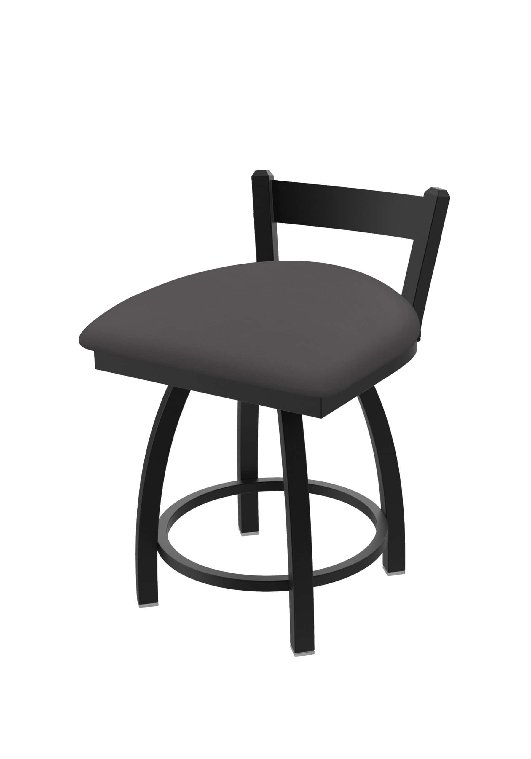 This 18-Inch Low Single Slat Back Vanity Stool is the perfect addition to your vanity, desk, or counter area. It features a sturdy steel frame with a black wrinkle finish, a comfortable Canter Storm seat, and a single-ring base. Enjoy just enough back support while being able to tuck it neatly under your table or counter. This stool is built to last and designed for comfort.