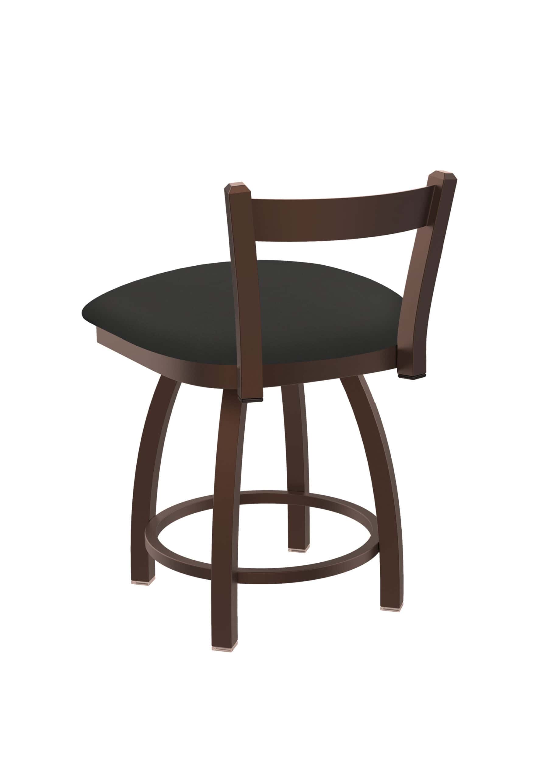 This 18-Inch Low Single Slat Back Vanity Stool offers a blend of contemporary design and sturdy construction, perfect for completing your vanity, desk, or counter area. Its low back design allows it to tuck neatly under surfaces, maximizing space while providing comfortable seating. The bronze finish and Canter Iron vinyl seat add a touch of elegance to any room. Built with a durable steel frame and a smooth swivel mechanism, this stool ensures long-lasting use and enjoyment.