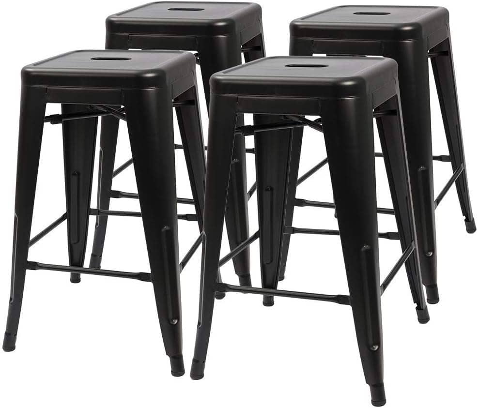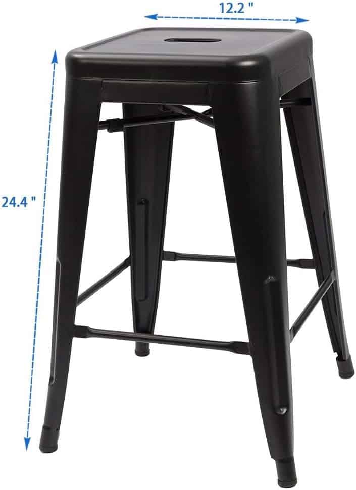 The 24-Inch Black Metal Stackable Indoor Outdoor Barstools Backless (Set of 4) are designed to combine style, functionality, and durability. With their sleek, modern design and sturdy construction, these barstools are perfect for a variety of settings, including kitchens, dining areas, patios, and man caves. Featuring a stackable design for space-saving storage, these stools are lightweight yet durable, making them easy to move and use in any location. Their scratch-resistant finish and water-resistant coating ensure long-lasting use both indoors and outdoors.