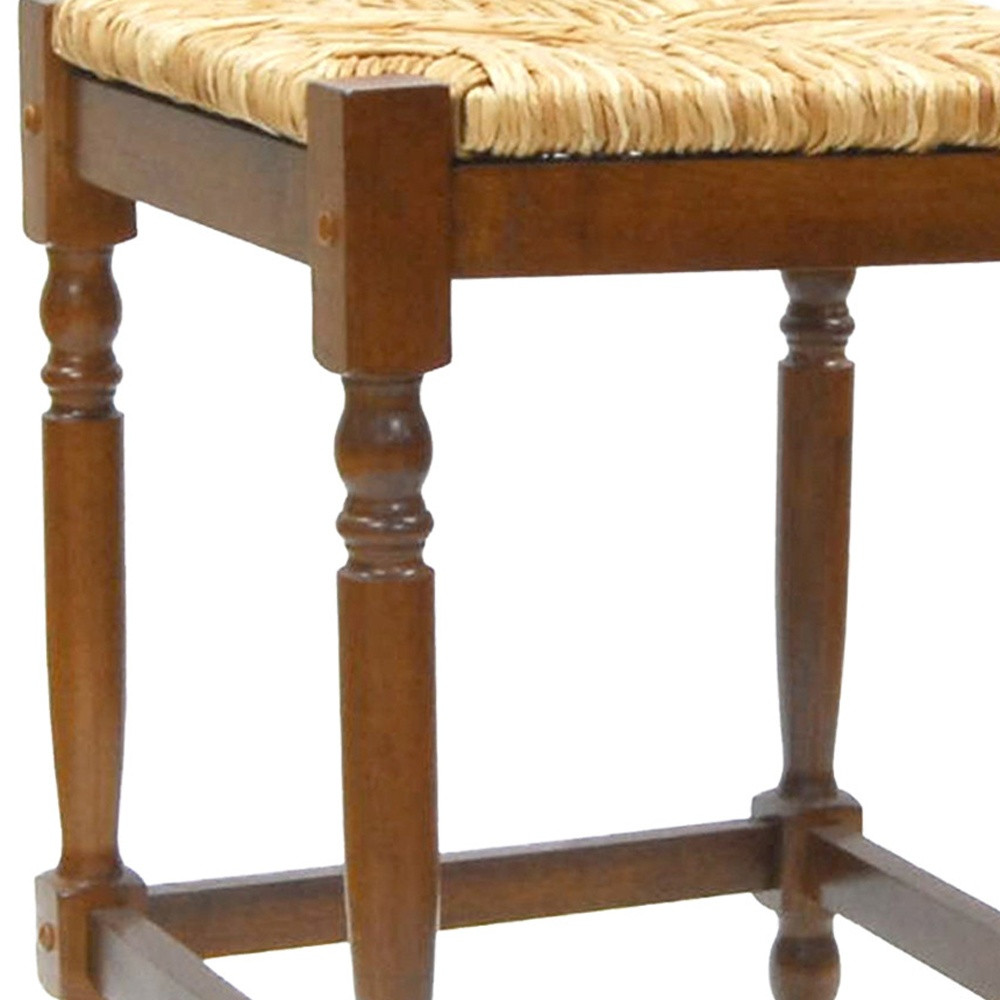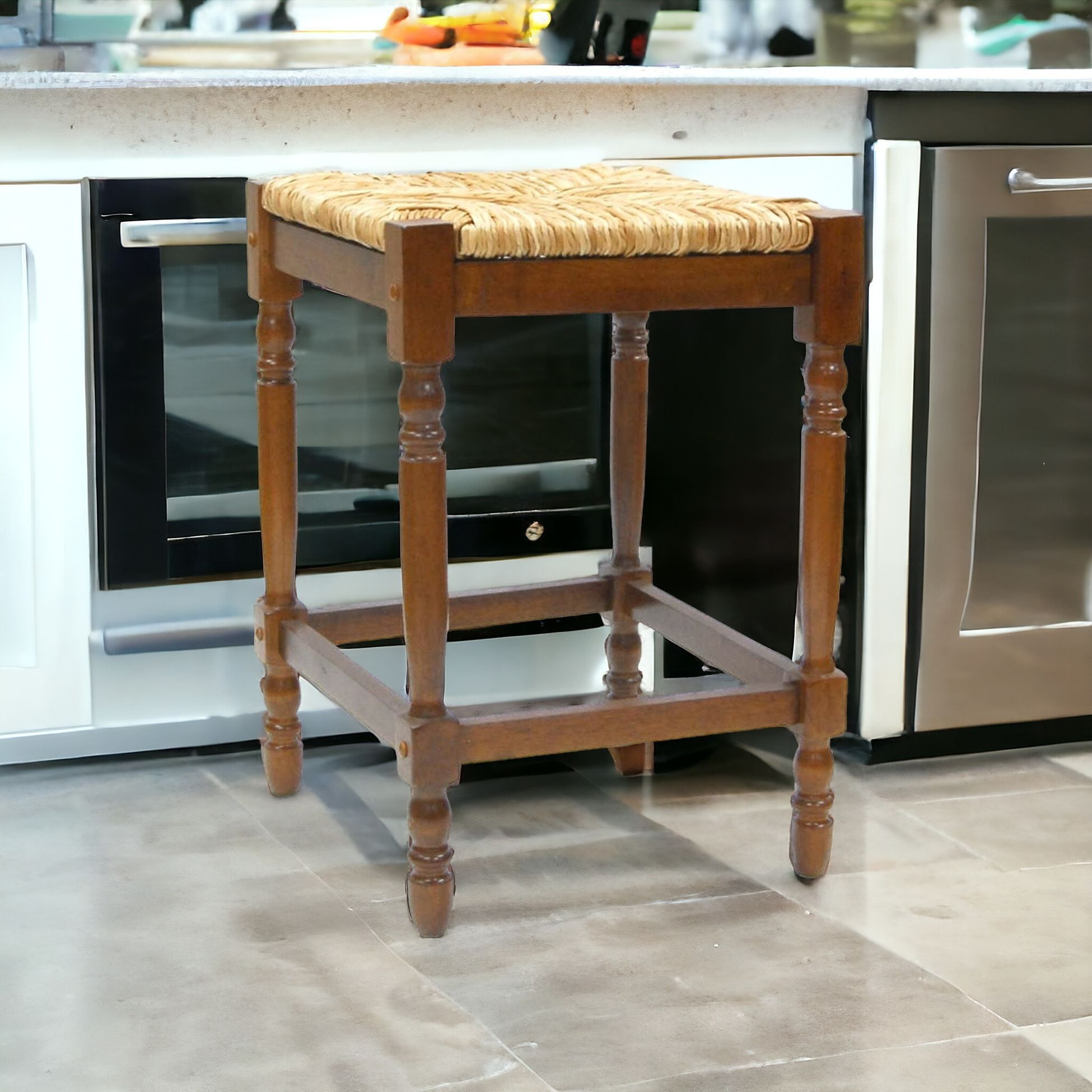 Bring a trendy bar vibe to your space with the 24-Inch Natural and Brown Solid Wood Backless Counter Bar Stool. Featuring a natural rush seat that contrasts beautifully with the high-quality brown solid wood base, this stool blends style and functionality. Its square-shaped seat adds a fresh and fashionable look, while the built-in footrest enhances comfort and convenience. Perfect for counter-height seating, this backless design helps create an open, spacious feel in any room.