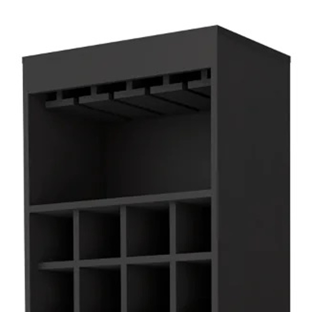 Elevate your space with this modern black bar cabinet crafted from premium manufactured wood. Featuring versatile storage cabinets and shelves, this freestanding rectangular piece offers both functionality and style. Perfect for adding a touch of sophistication to any room, the hard-wearing construction ensures durability while maximizing your storage options without sacrificing aesthetics. A chic addition to your home decor, this cabinet is designed to enhance the organization and visual appeal of your living space.