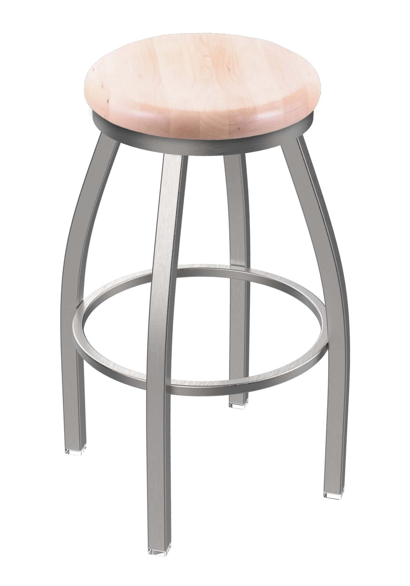 This counter stool offers a blend of contemporary design and robust construction. Featuring a stainless steel frame and a natural maple seat, this stool is both stylish and durable. The swivel seat ensures easy movement, while the arched-leg base adds stability and visual appeal. Perfect for completing your bar or dining area, this stool is designed for both comfort and longevity.