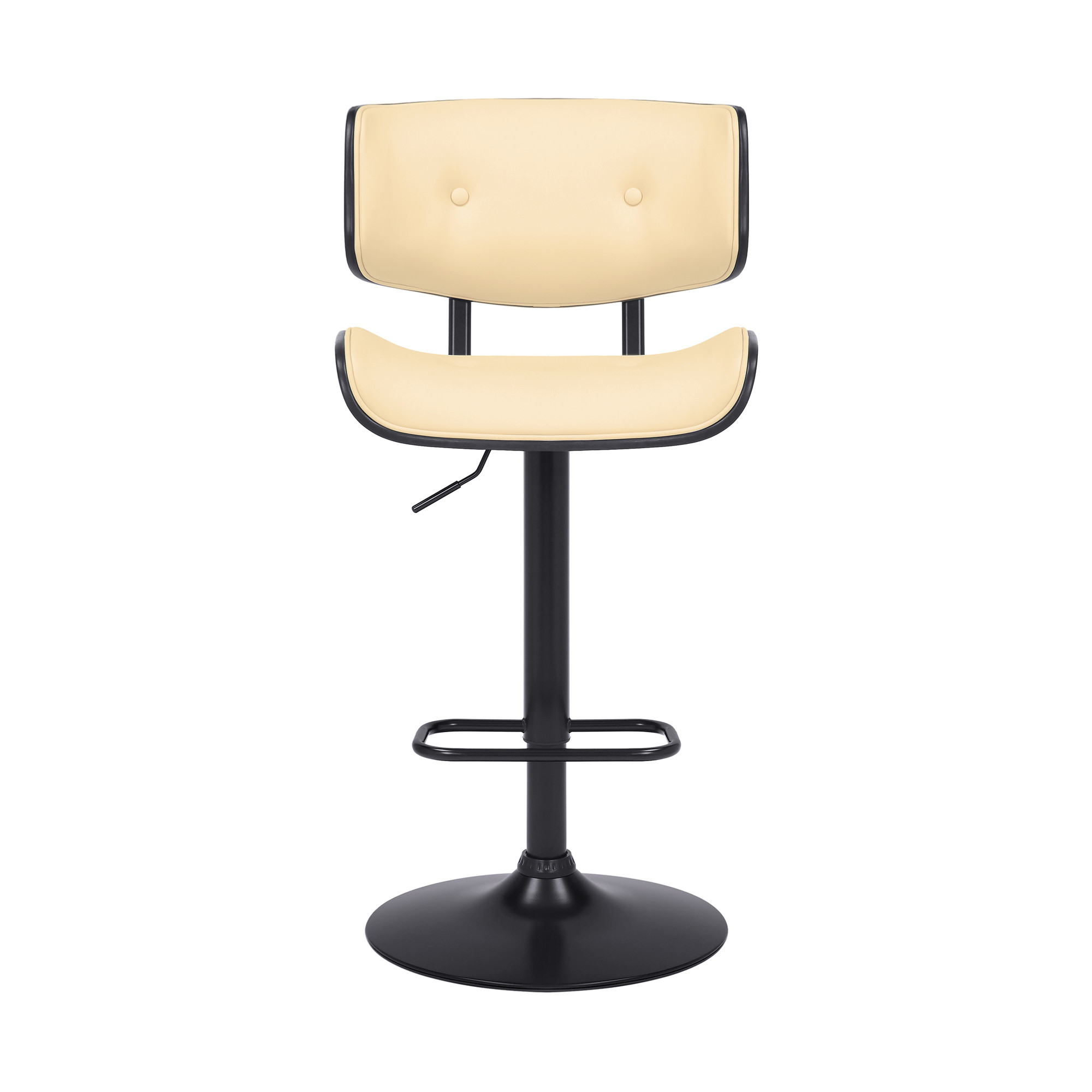 Elevate your seating experience with the stylish and functional 25-Inch Cream and Black Adjustable Swivel Bar Stool. This modern barstool features luxurious faux leather button-tufted upholstery with a slightly curved design for added comfort and aesthetic appeal. The black wood frame creates a striking contrast to the cream faux leather, while the sturdy black steel base ensures durability and stability. With its adjustable height functionality and full 360-degree swivel, this bar stool is perfect for any setting, offering both versatility and sophistication.