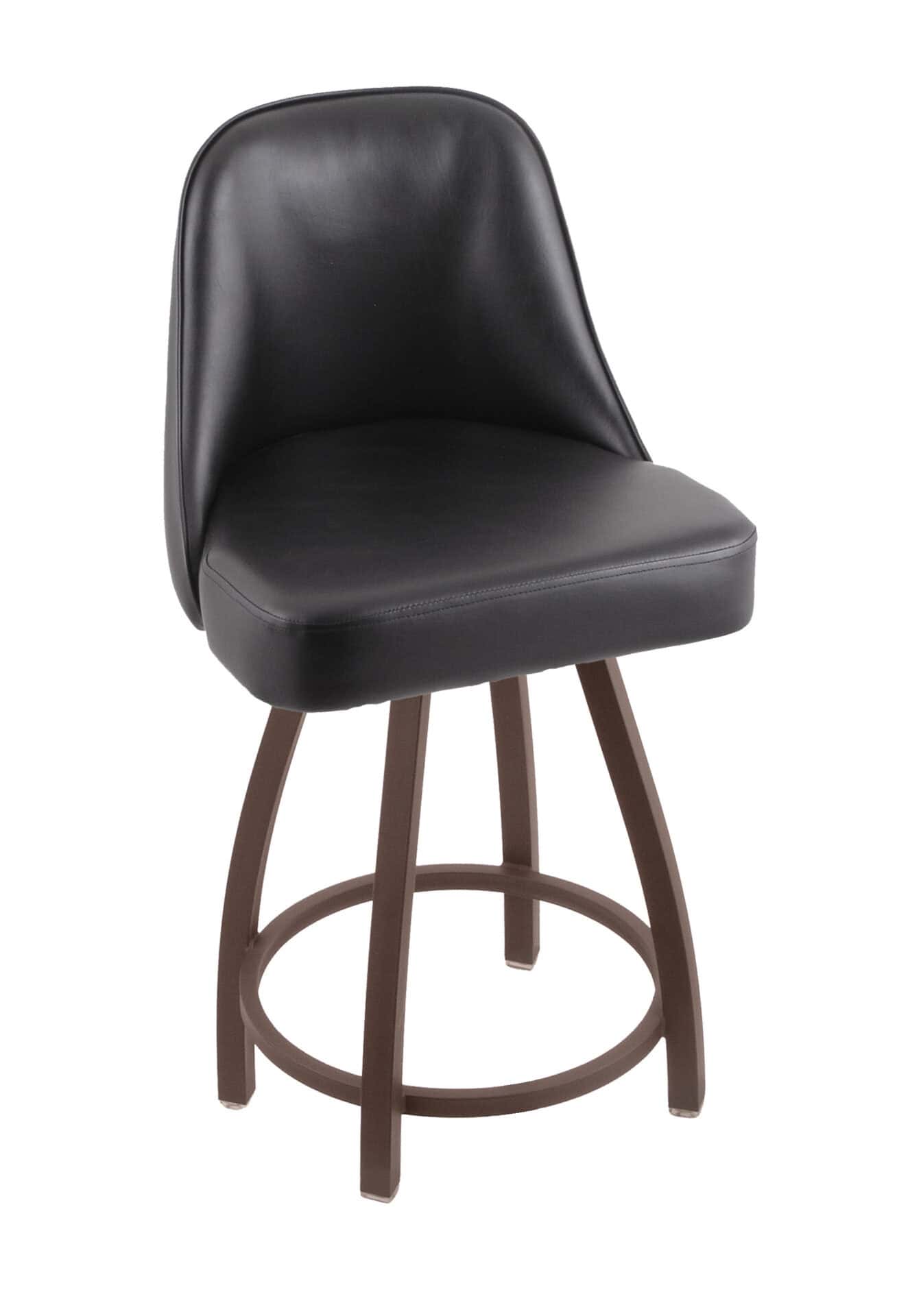 This 25-Inch Padded Back Counter Stool is the perfect blend of comfort and durability for your space. It features a robust steel frame with a bronze finish and a comfortable black vinyl seat, making it ideal for counters ranging from 35 to 37 inches in height. Experience superior comfort and lasting quality with this exceptional counter stool.