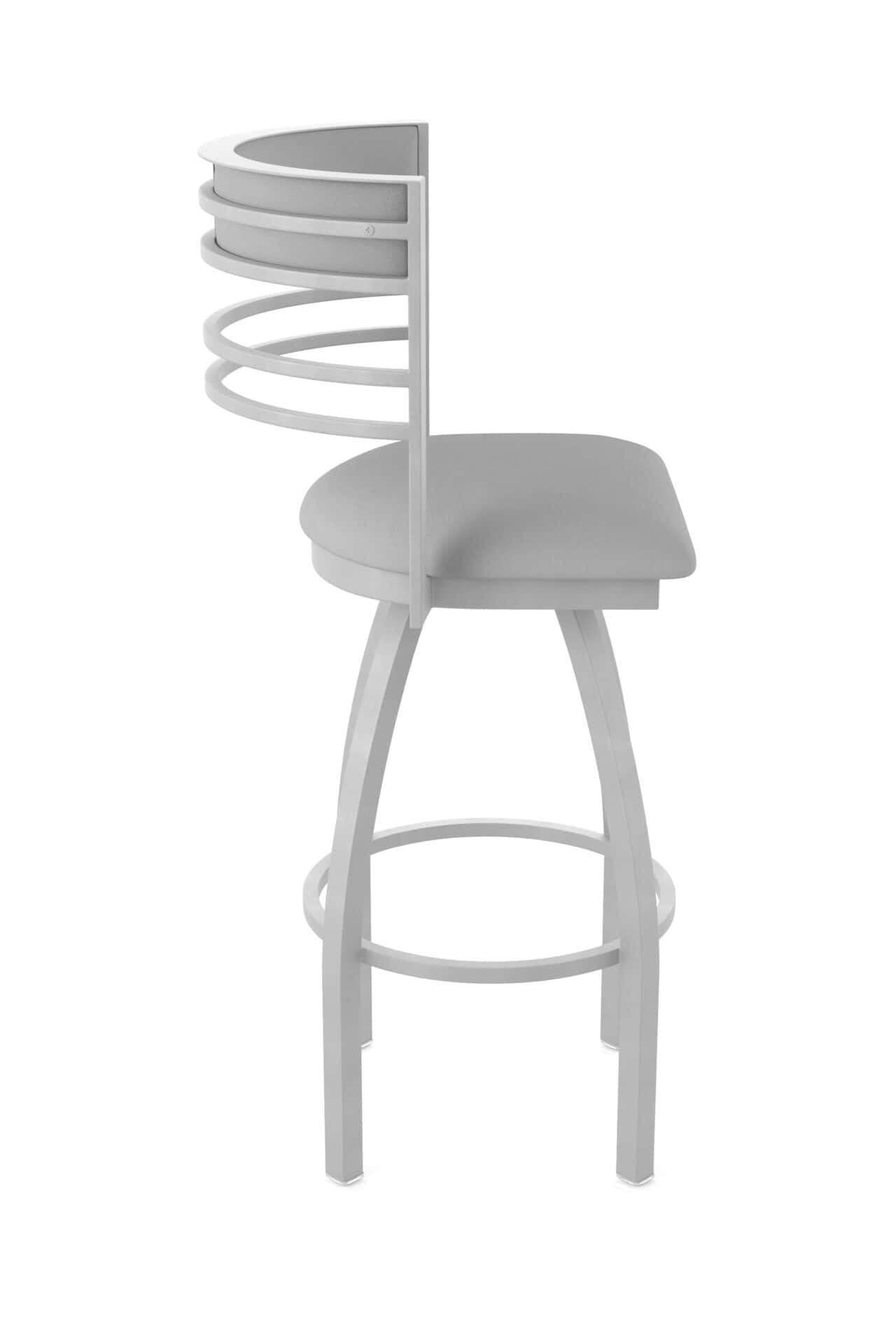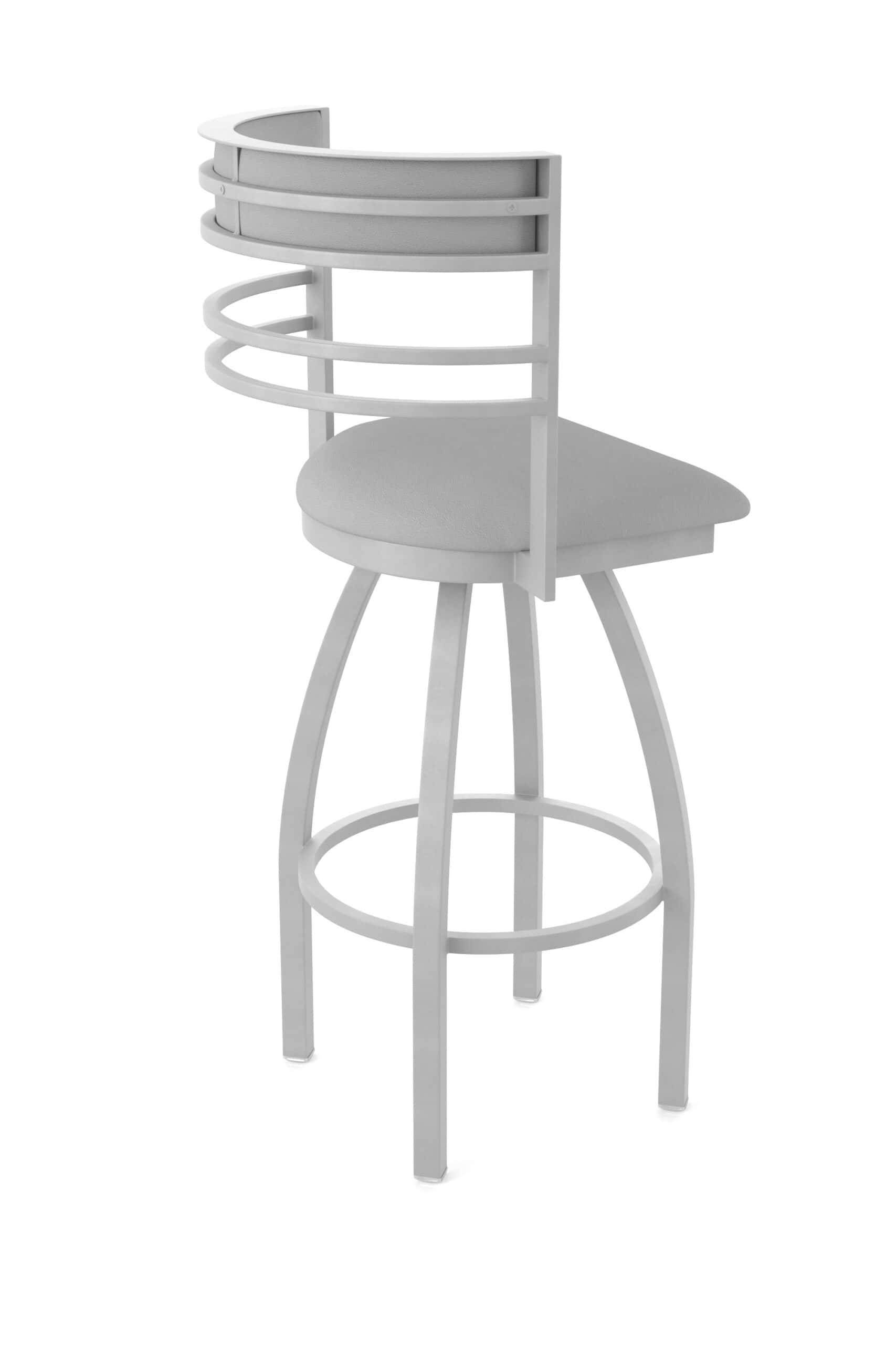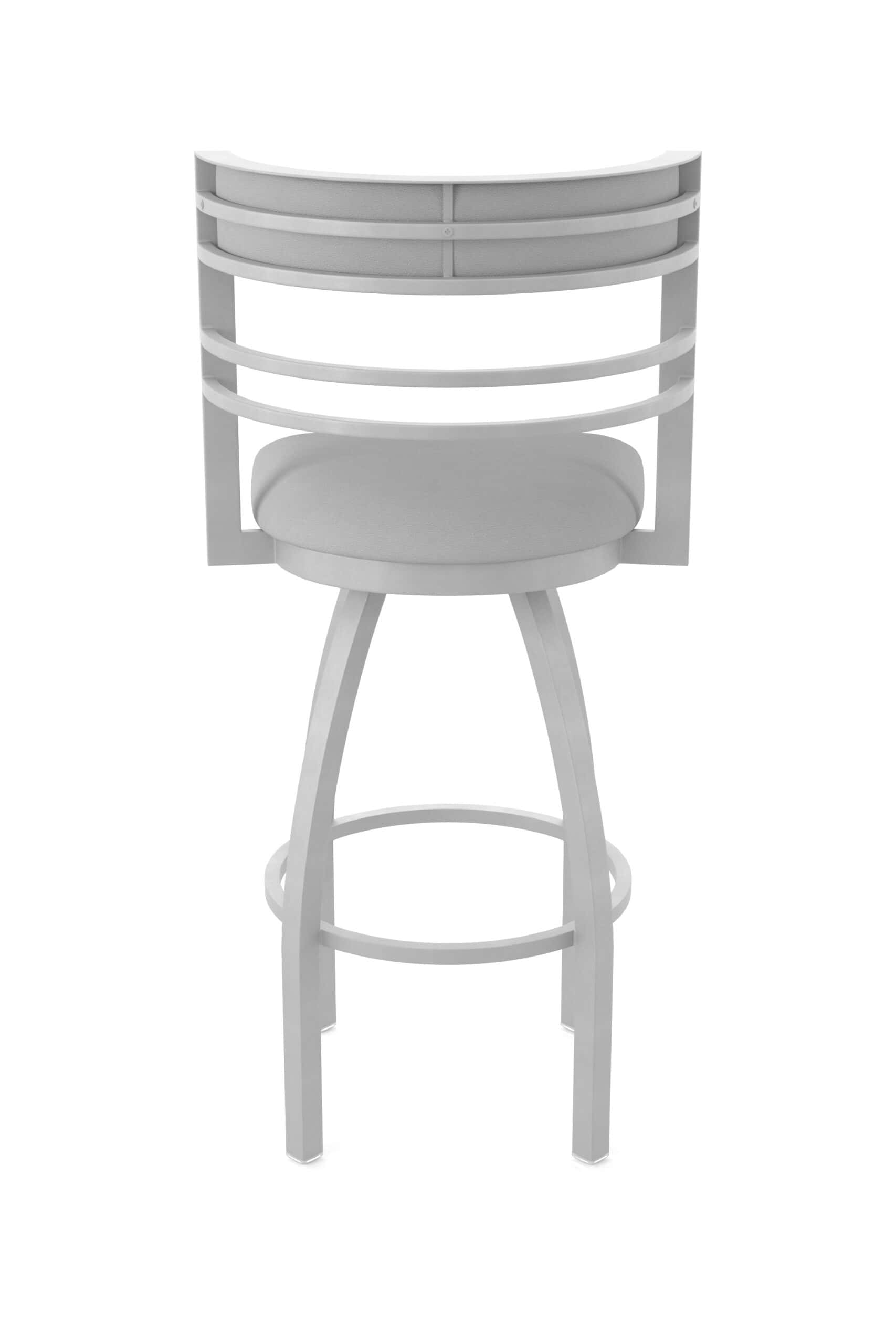 - Back: Complementary, padded, and upholstered tall back offers enhanced design, comfort, and support with a wide selection of vinyl and fabric options, and is accented by strong, sleek metal bars that match the base finish.