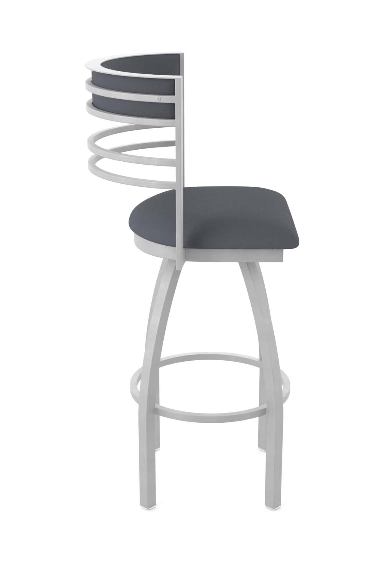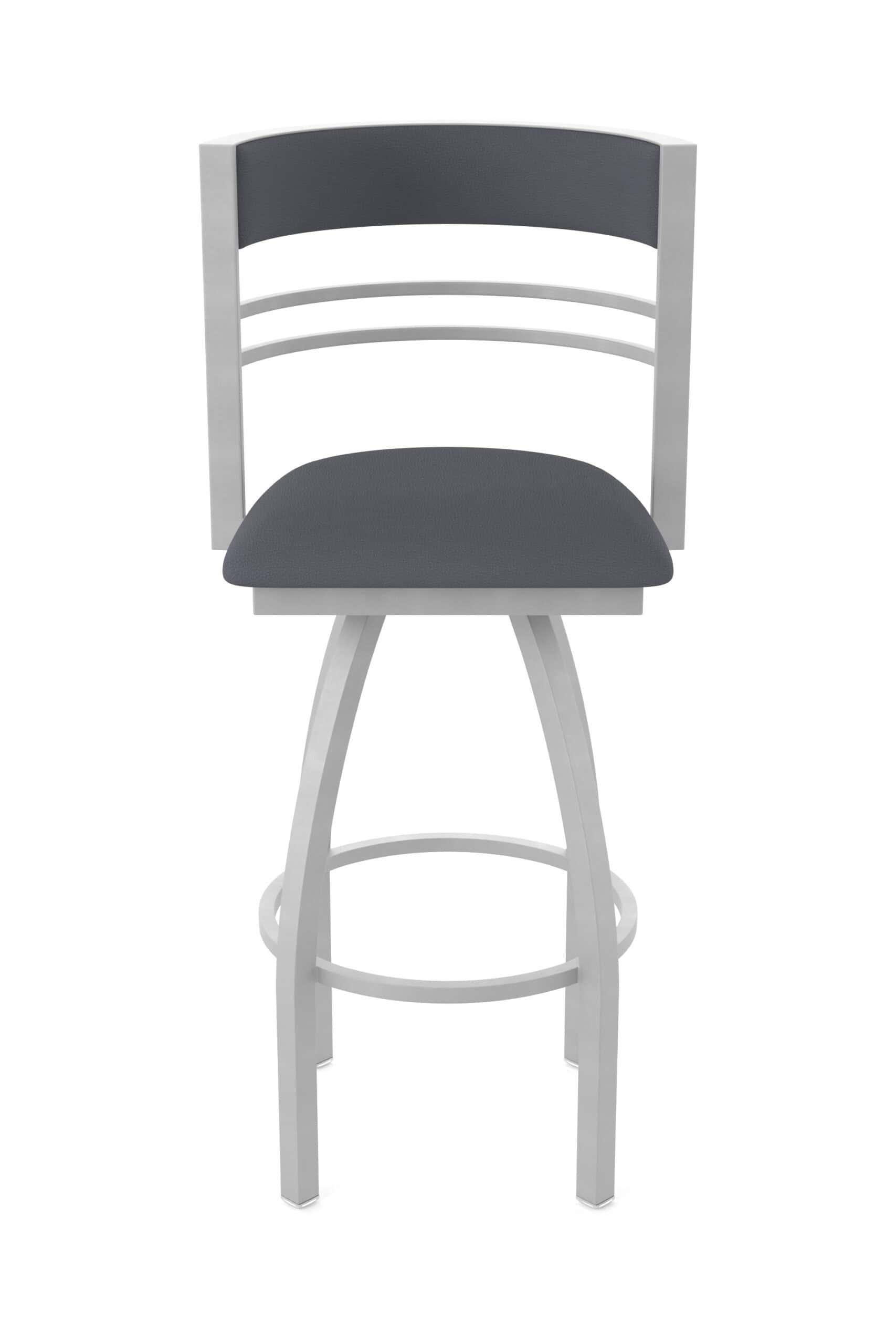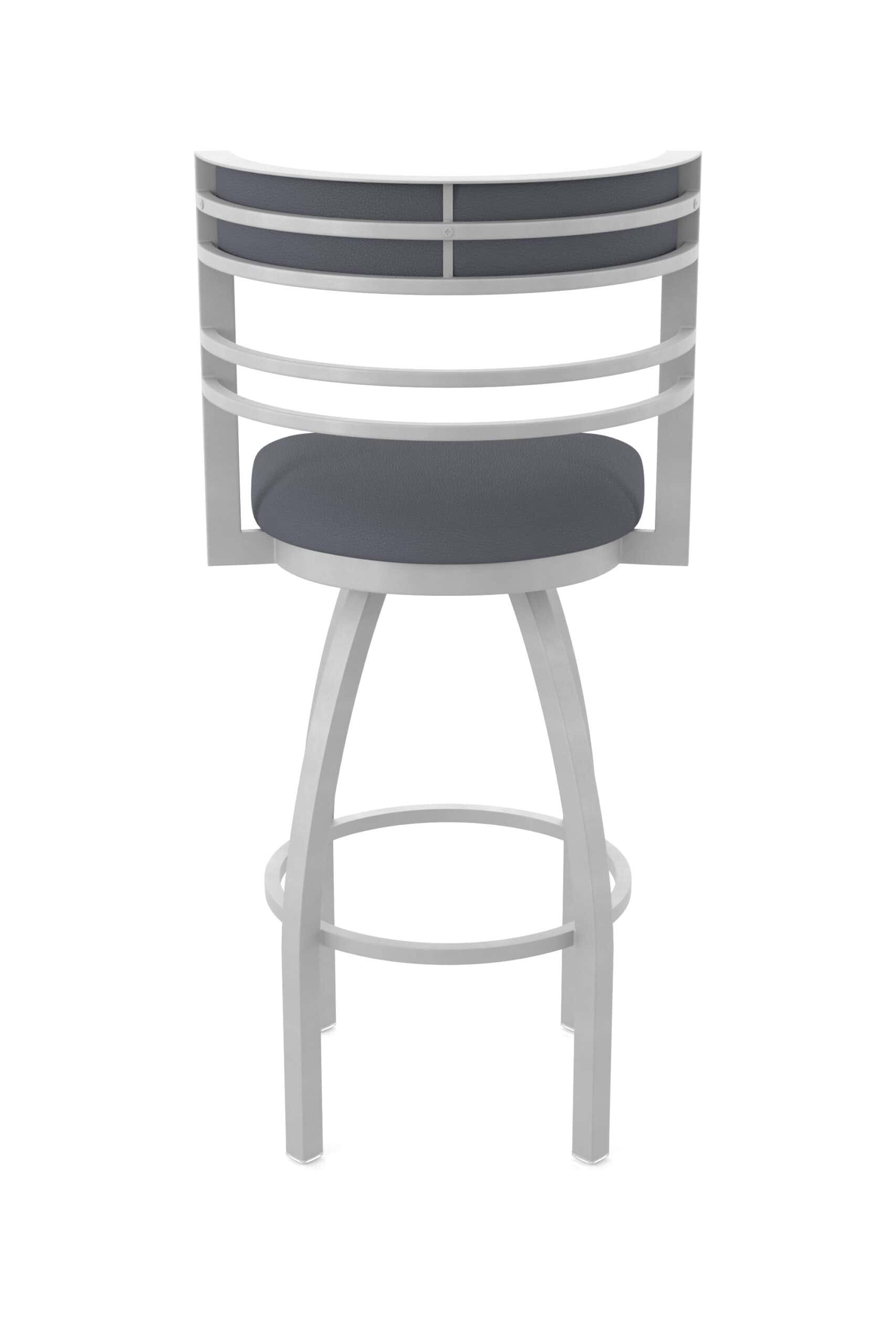 This counter stool seamlessly blends robust construction with sophisticated design, offering both exceptional comfort and enduring style. The tall, curved slat back provides ergonomic support, while the swivel function ensures ease of movement. Finished in anodized nickel, this stool adds a touch of modern elegance to any space.