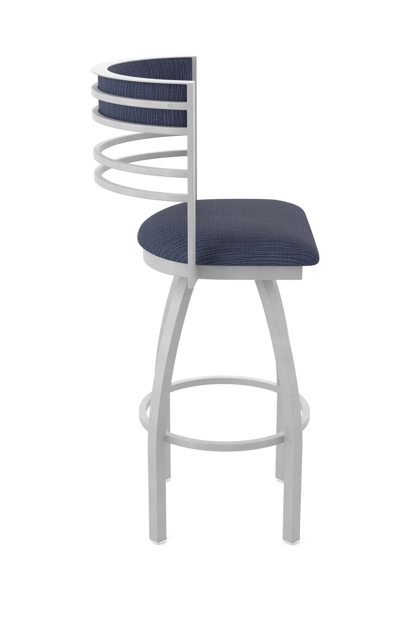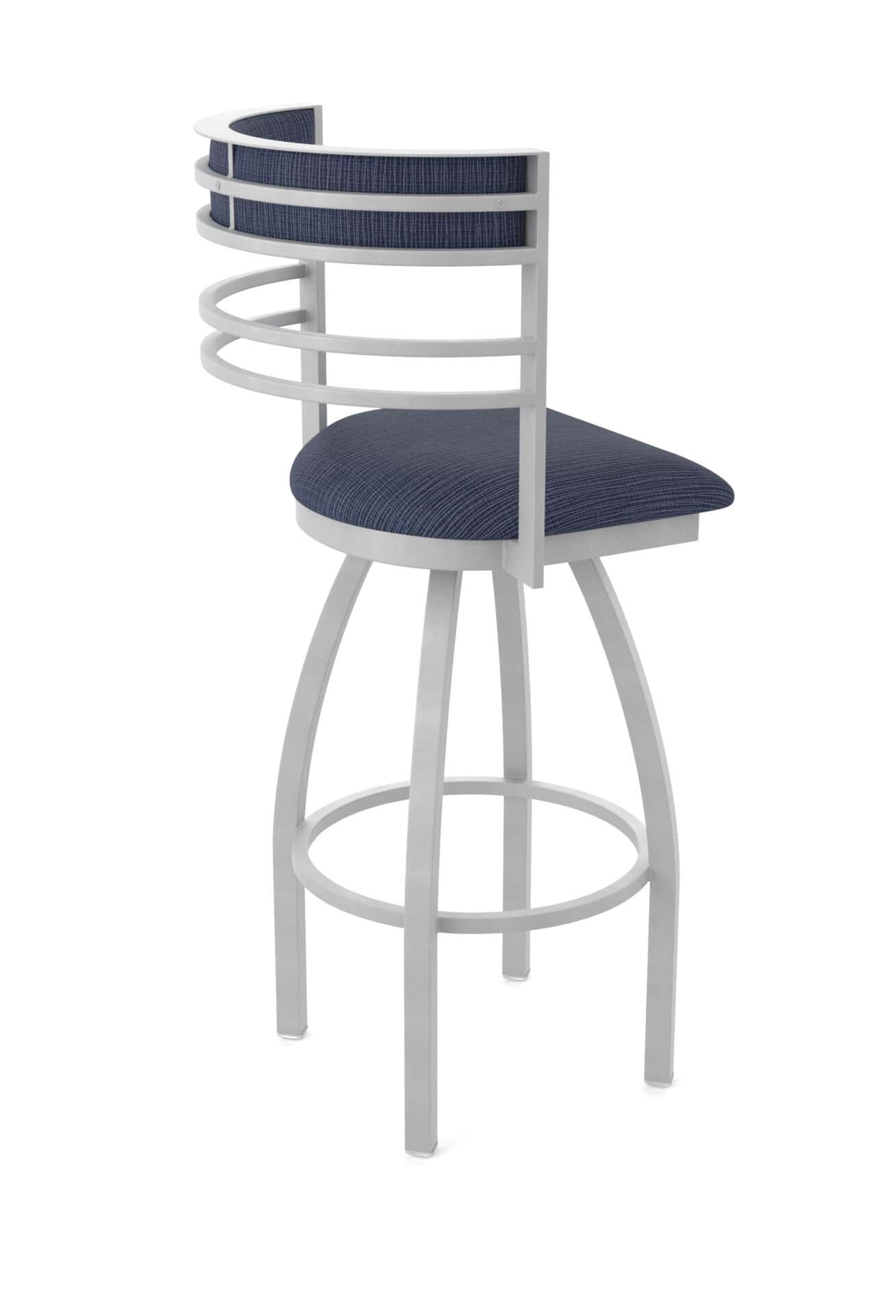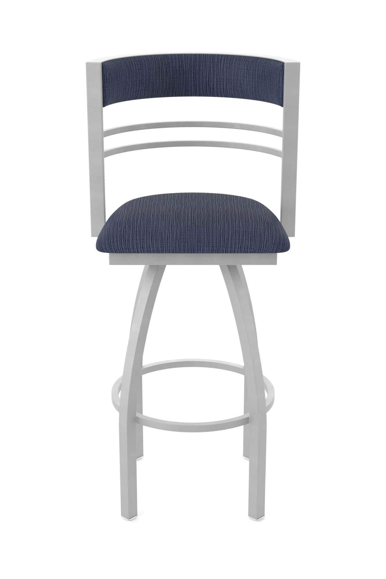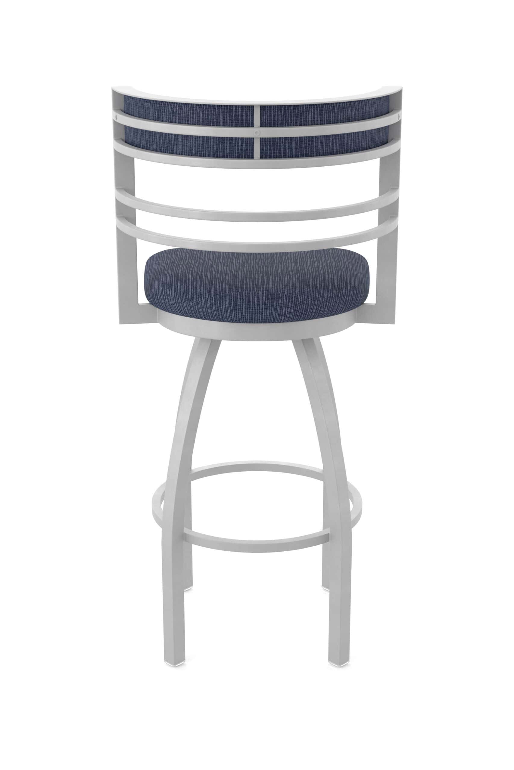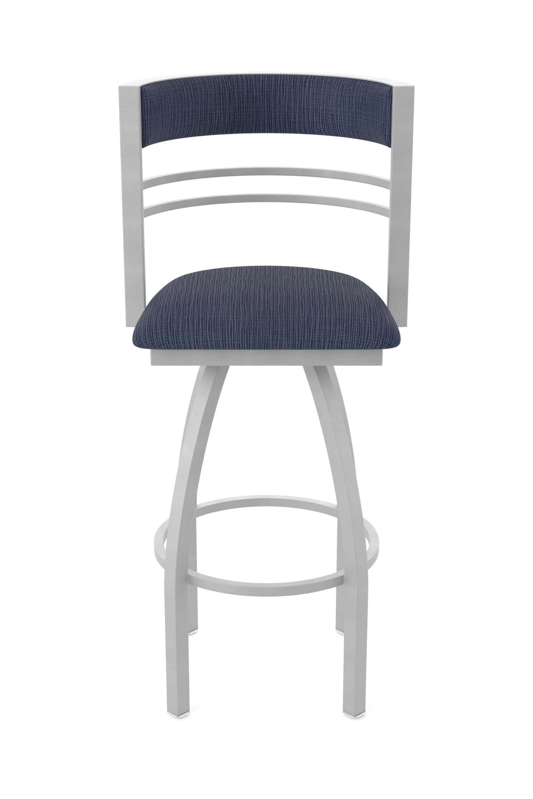 The stool features a robust steel frame with a durable powder coat finish. The padded seat is made with high-density foam and commercial-grade upholstery, offering both support and longevity. The swivel mechanism ensures smooth and easy rotation, making it a great addition to any counter or bar area.