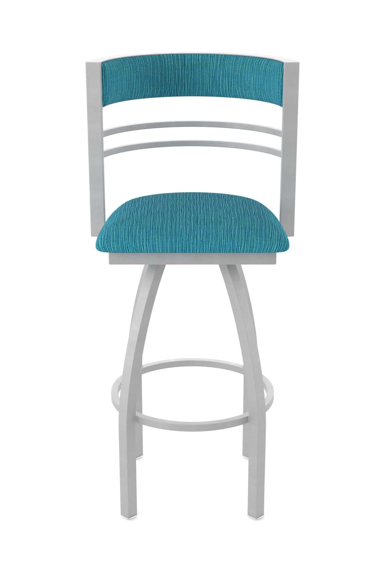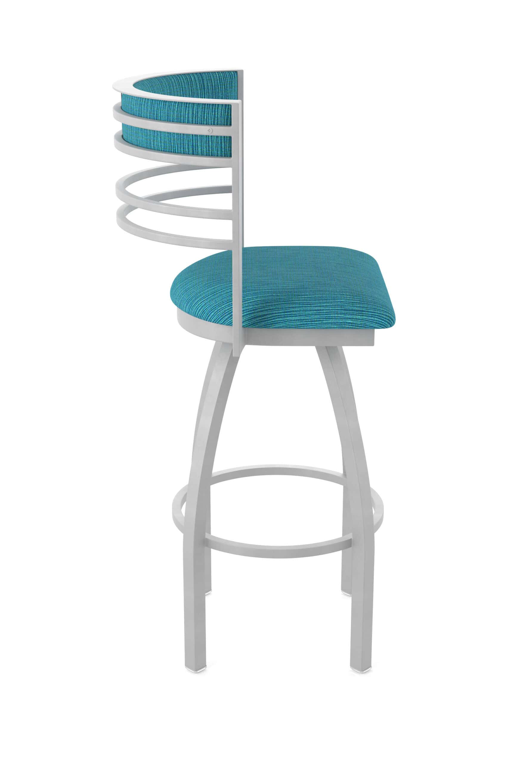The stool features a durable steel frame with a sleek finish. The padded and upholstered seat and back provide exceptional comfort and support. The swivel mechanism ensures easy movement, making it a great addition to any space.