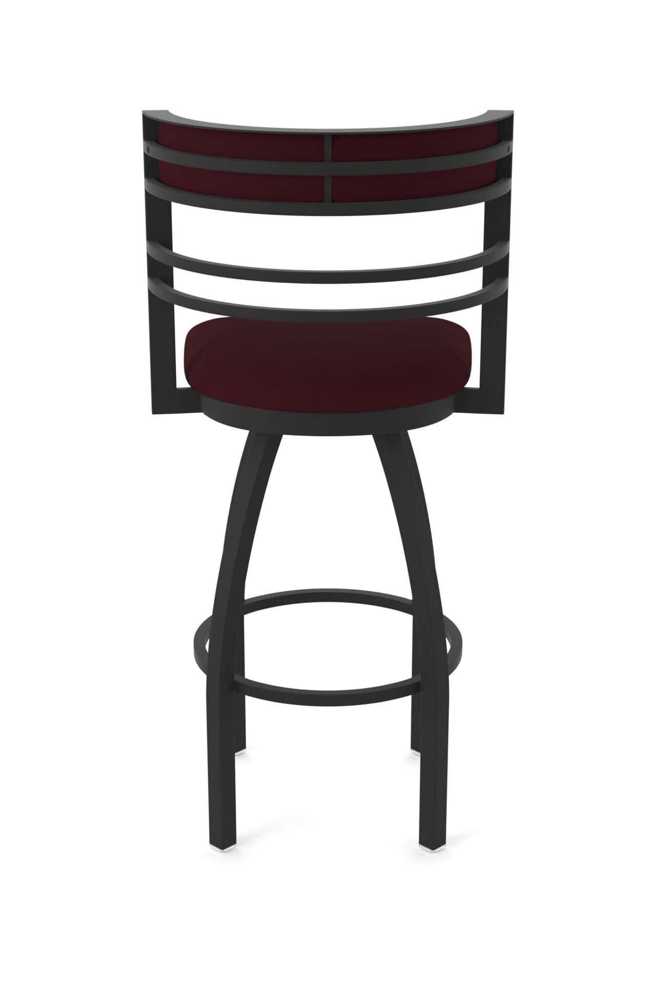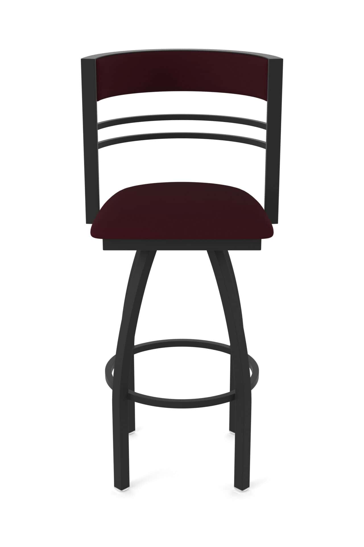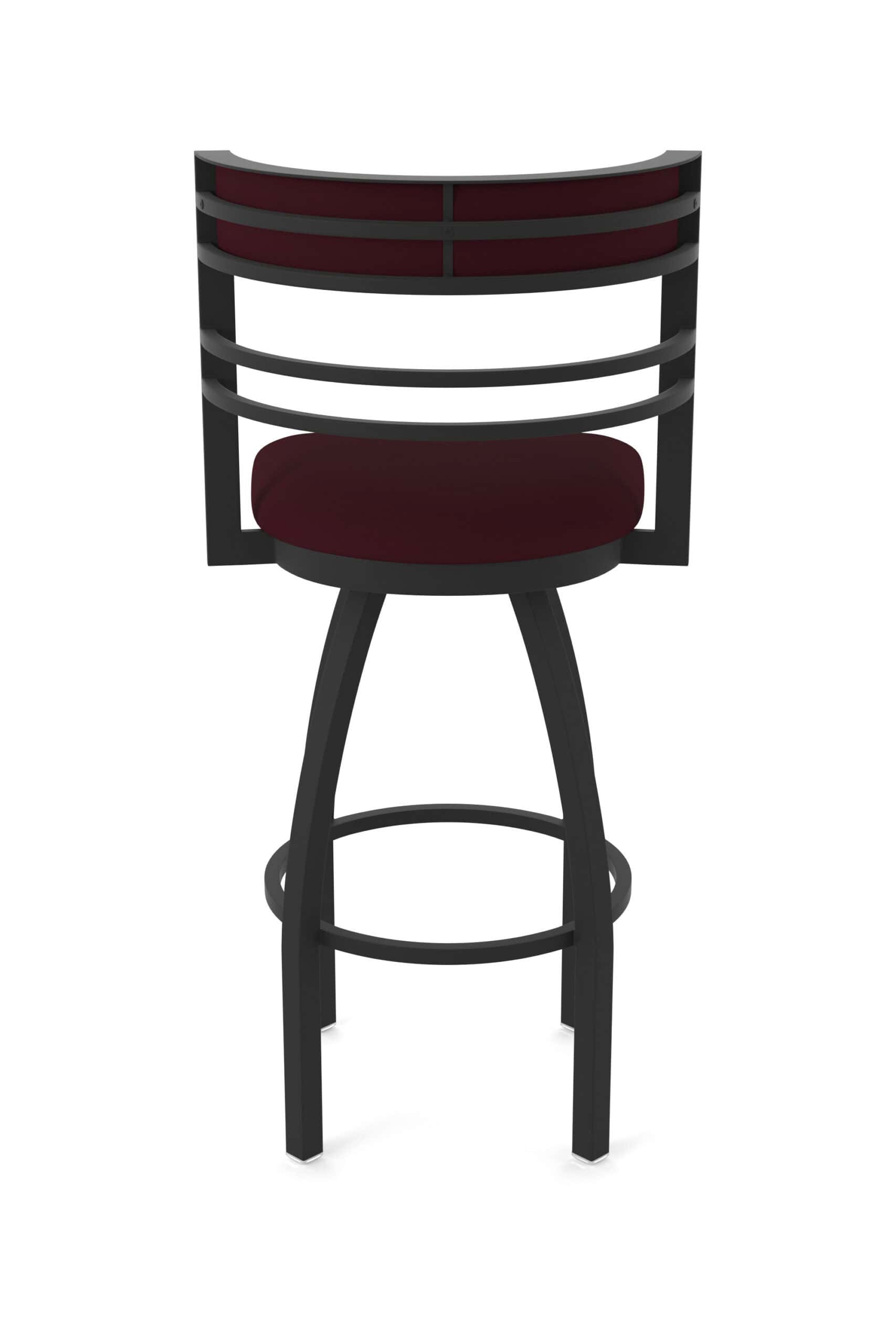 This 25-inch steel swivel counter stool offers a blend of style, durability, and comfort. Featuring a black wrinkle finish, a Canter Bordeaux cushioned seat, and a tall curved slat back, this stool is designed to enhance any space. Enjoy smooth swivel action and robust construction for years to come.