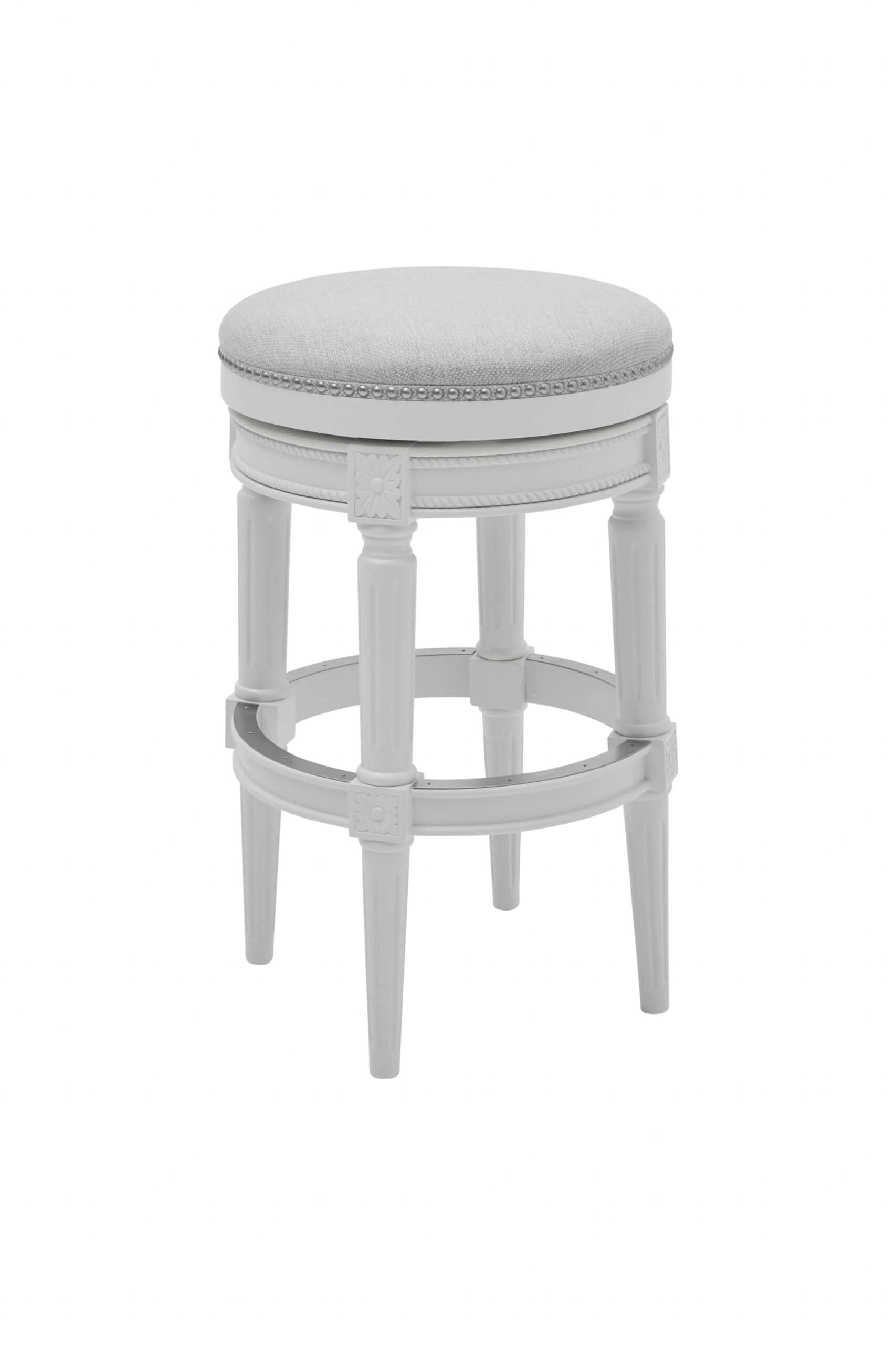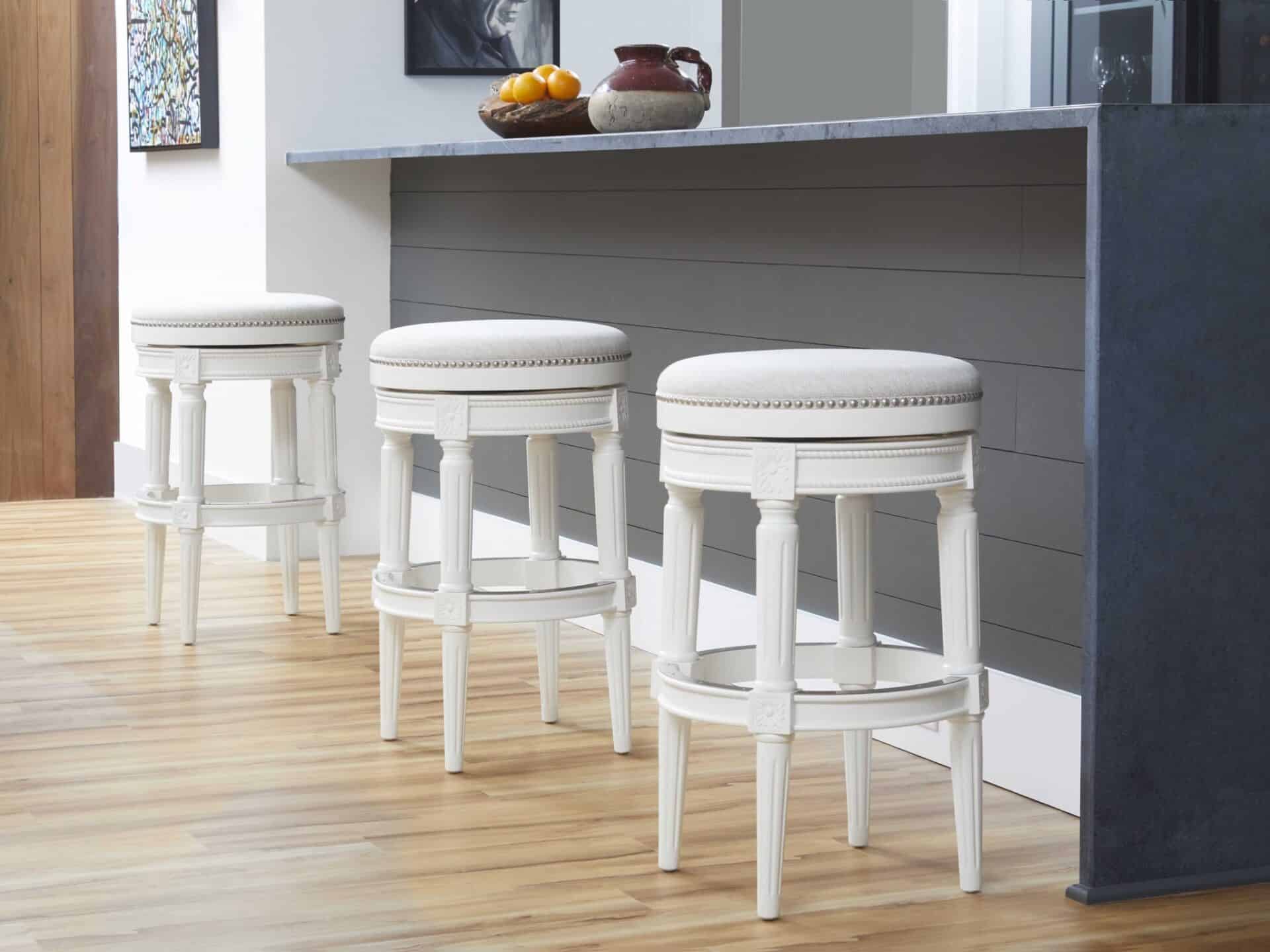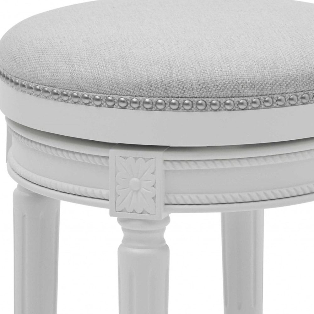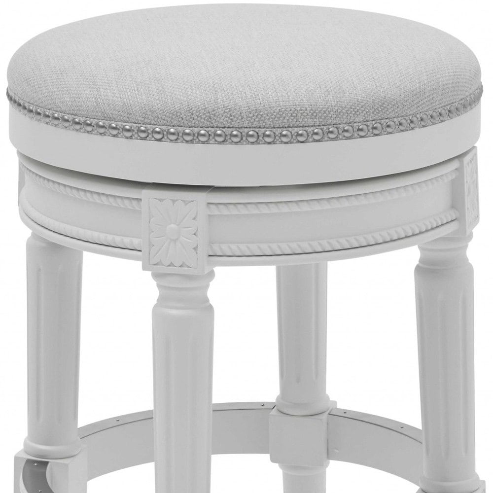 The 26″ Gray Swivel Backless Bar Stool with Nailhead Trim combines elegance and functionality, making it a perfect addition to any man cave or bar area. Featuring a chic gray upholstered seat and a stylish nailhead trim, this modern bar stool offers both comfort and sophistication. The backless swivel design enhances mobility, while the solid wood frame in a sleek white finish ensures durability. Complete with a convenient footrest, this stool is designed for both style and practicality, effortlessly elevating the aesthetic of your space.