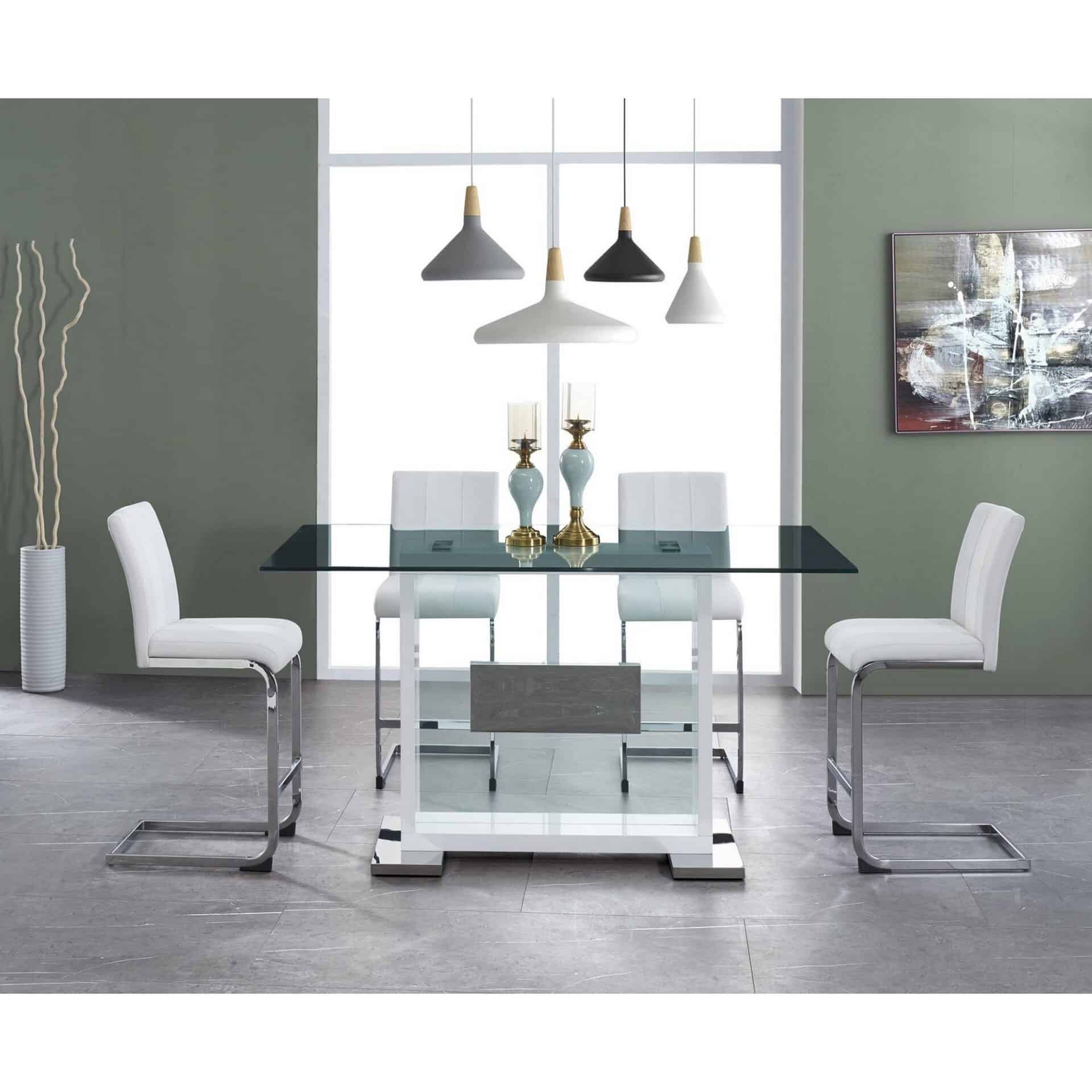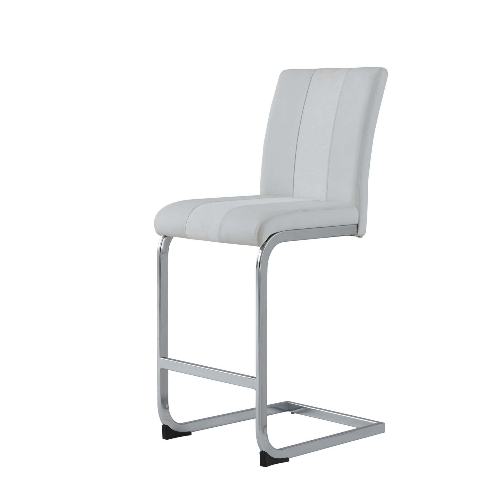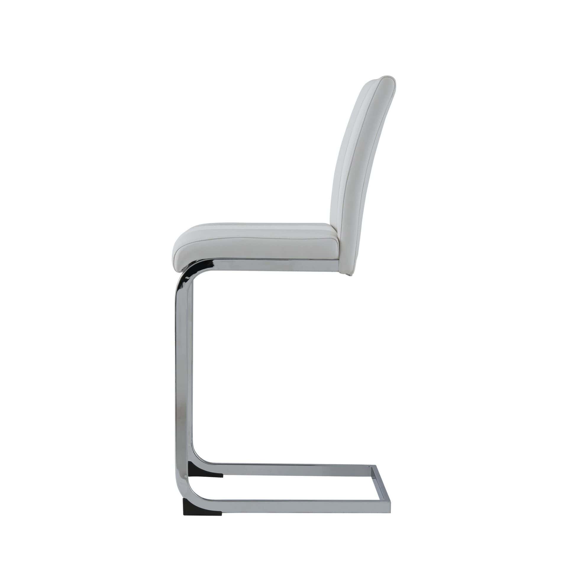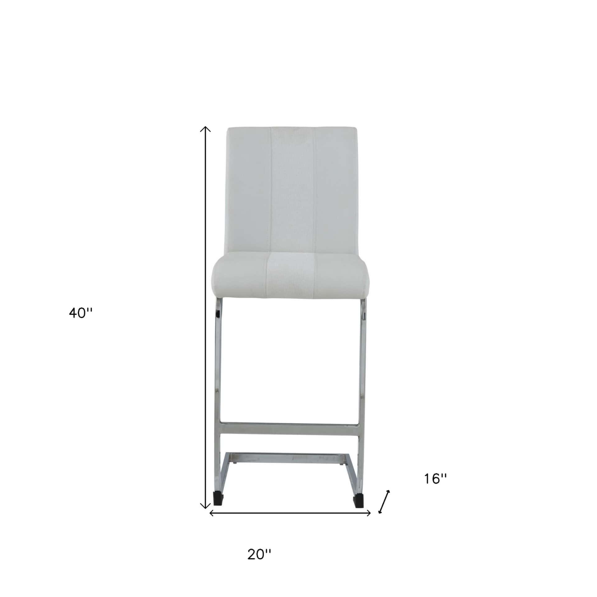 Comfort and style blend seamlessly in this set of four 26-inch white and silver metal low back counter height bar stools. These stools feature a durable silver metal frame paired with a white solid and manufactured wood seat, creating a modern and updated aesthetic. The square-shaped seat and low back design ensure both comfort and visual appeal, while the integrated footrest provides added support and convenience. Perfect for kitchen counters, home bars, or man caves, these stools offer functional seating without compromising on style.