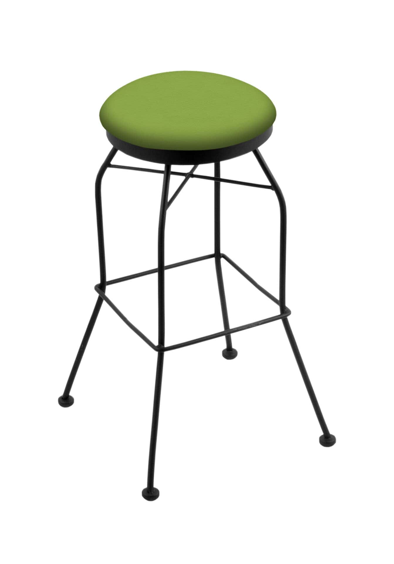 Enjoy contemporary style and lasting comfort with this backless bar stool. Featuring a sturdy steel frame with a sleek black wrinkle finish and a vibrant Canter Kiwi Green seat, this stool adds a touch of modern flair to any bar or counter area. The wireframe base provides stability, while the comfortable padded seat ensures a pleasant seating experience.