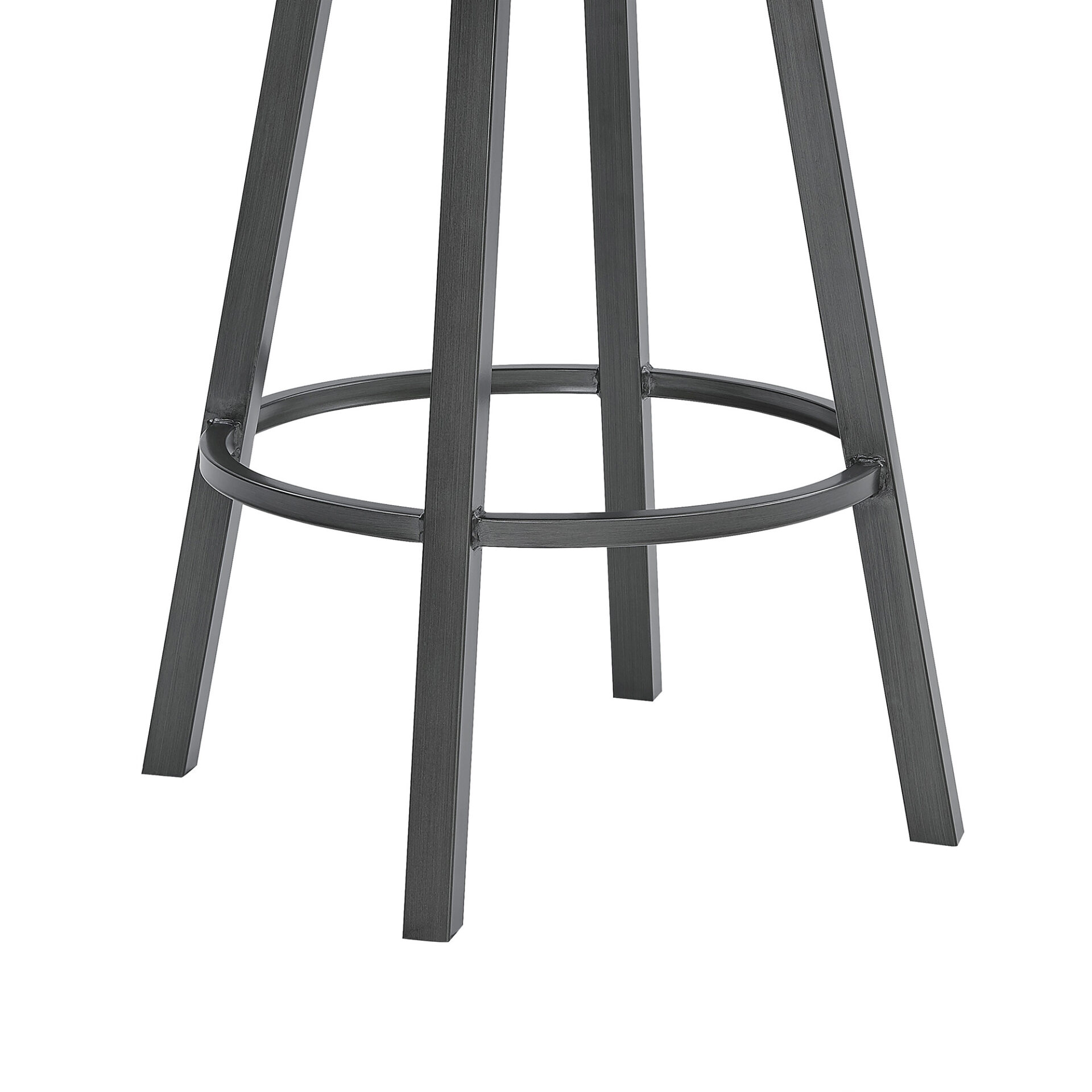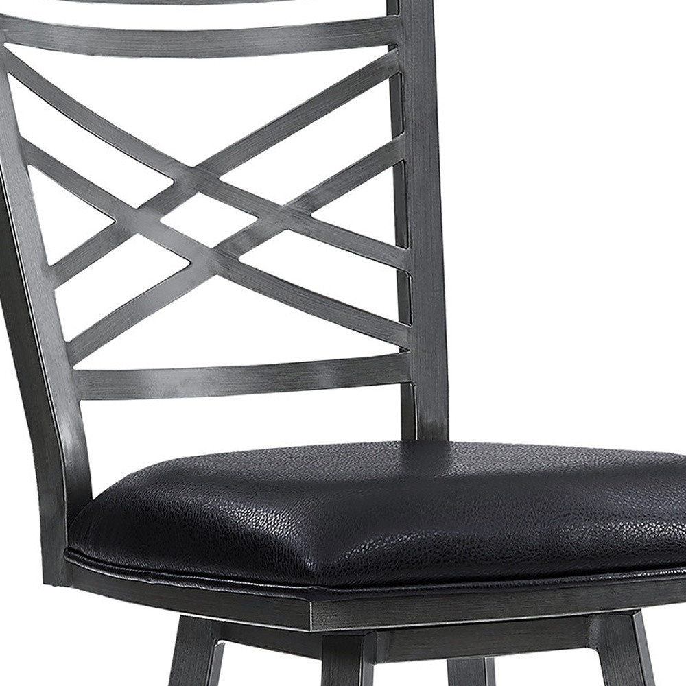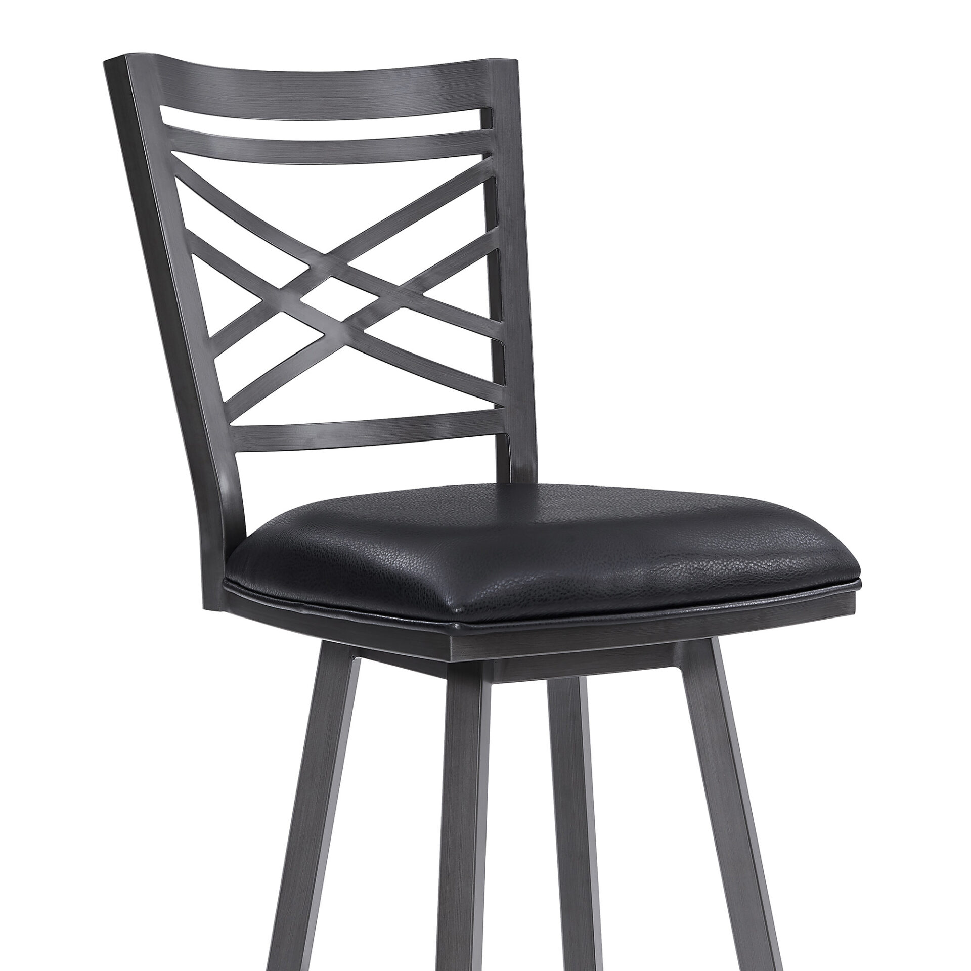 The 30-Inch Black Iron Bar Height Swivel Bar Stool brings a stylish and practical seating solution to your space, reminiscent of your favorite cafes or pubs. With its sleek black iron frame and matching black fabric seat, this stool boasts a chic, monotone design. Offering both comfort and functionality, it features a round-shaped seat, a full back for support, and a built-in footrest for added convenience. The stool also includes a full 360-degree swivel function, providing maximum mobility for a versatile seating experience.