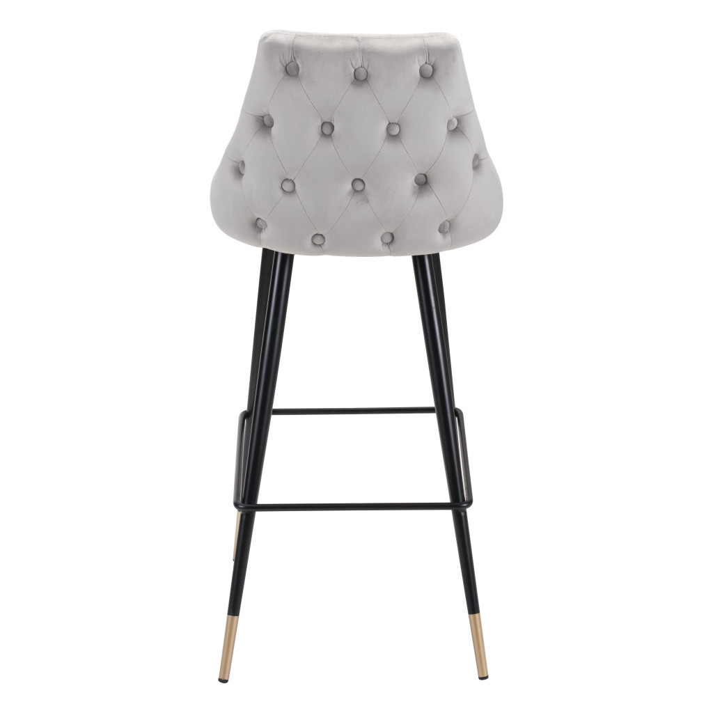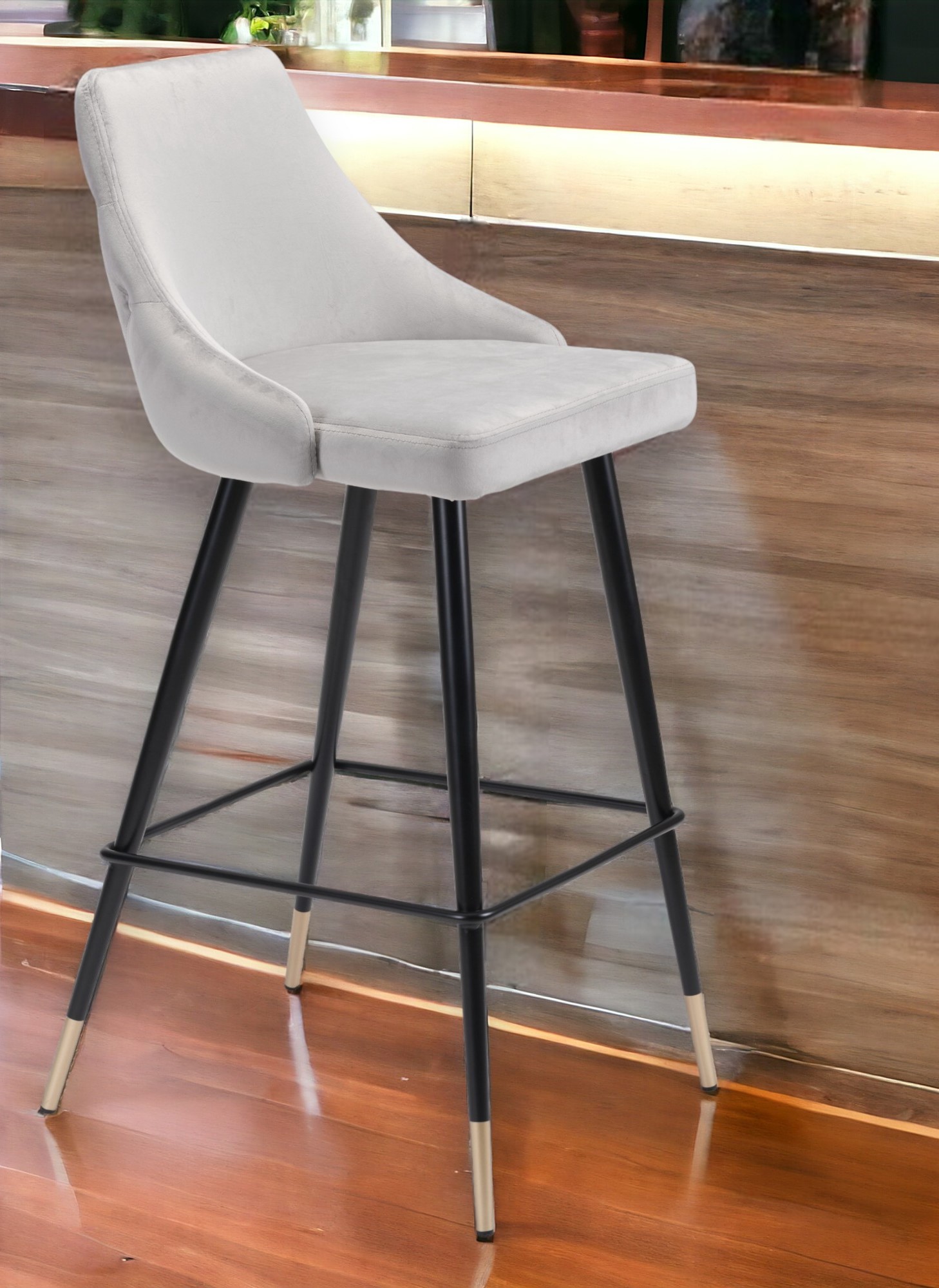 The perfect way to add extra seating to your home, this 30-inch gray and black velvet bar stool with footrest combines modern elegance with functional design. Featuring a high-quality black steel base and a gray velvet upholstered seat, this stool adds a fresh and updated look to any space. The bucket-shaped seat with a full back ensures comfort and style, while the built-in footrest provides additional support and convenience. Perfect for home bars, kitchen counters, or man caves, this stool is both practical and visually appealing.