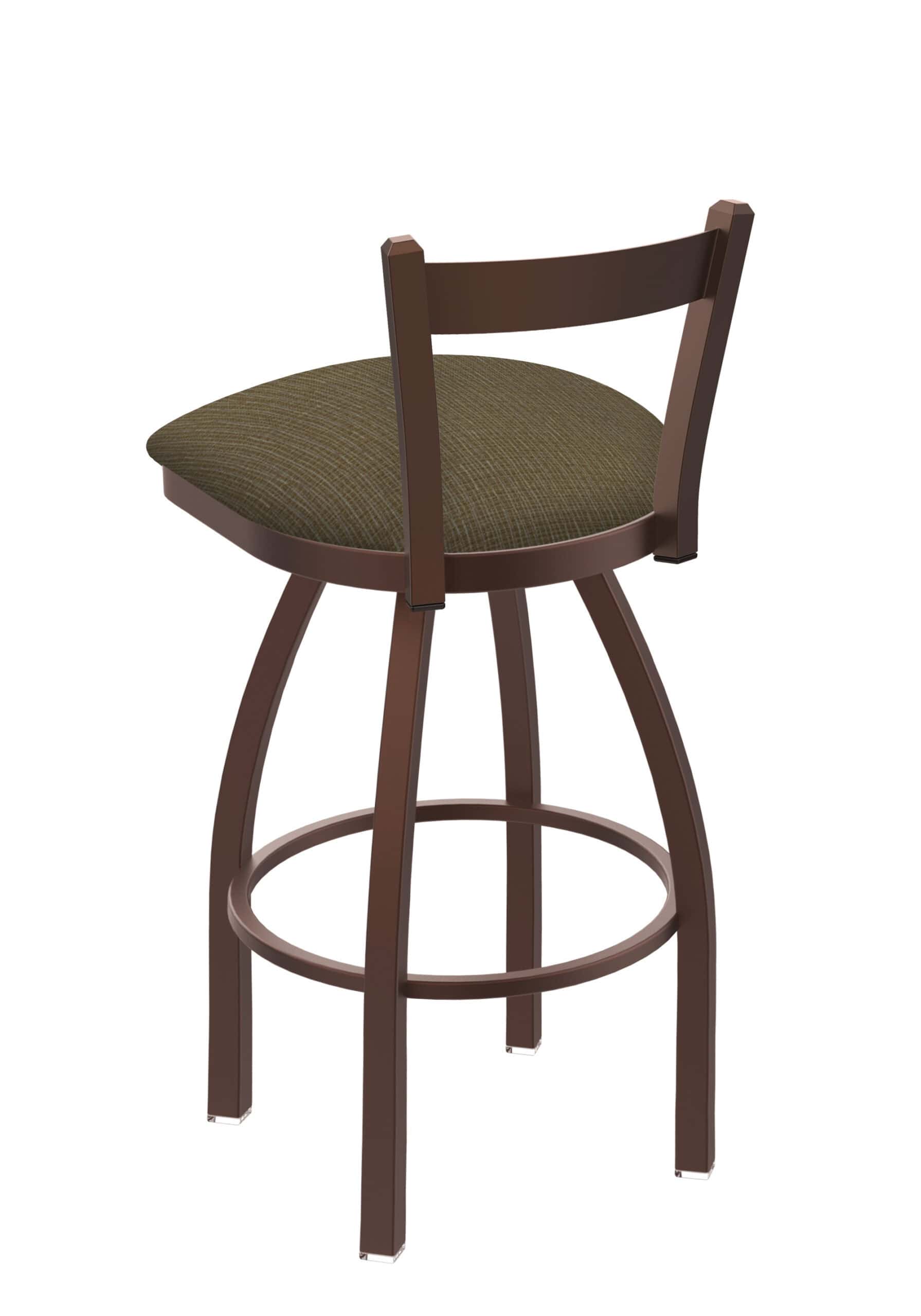 This bar stool features a commercial-quality steel frame, ensuring years of reliable use. The seat is generously padded with high-density foam and upholstered in a stylish and durable fabric. With its low back and swivel feature, this stool combines both form and function.