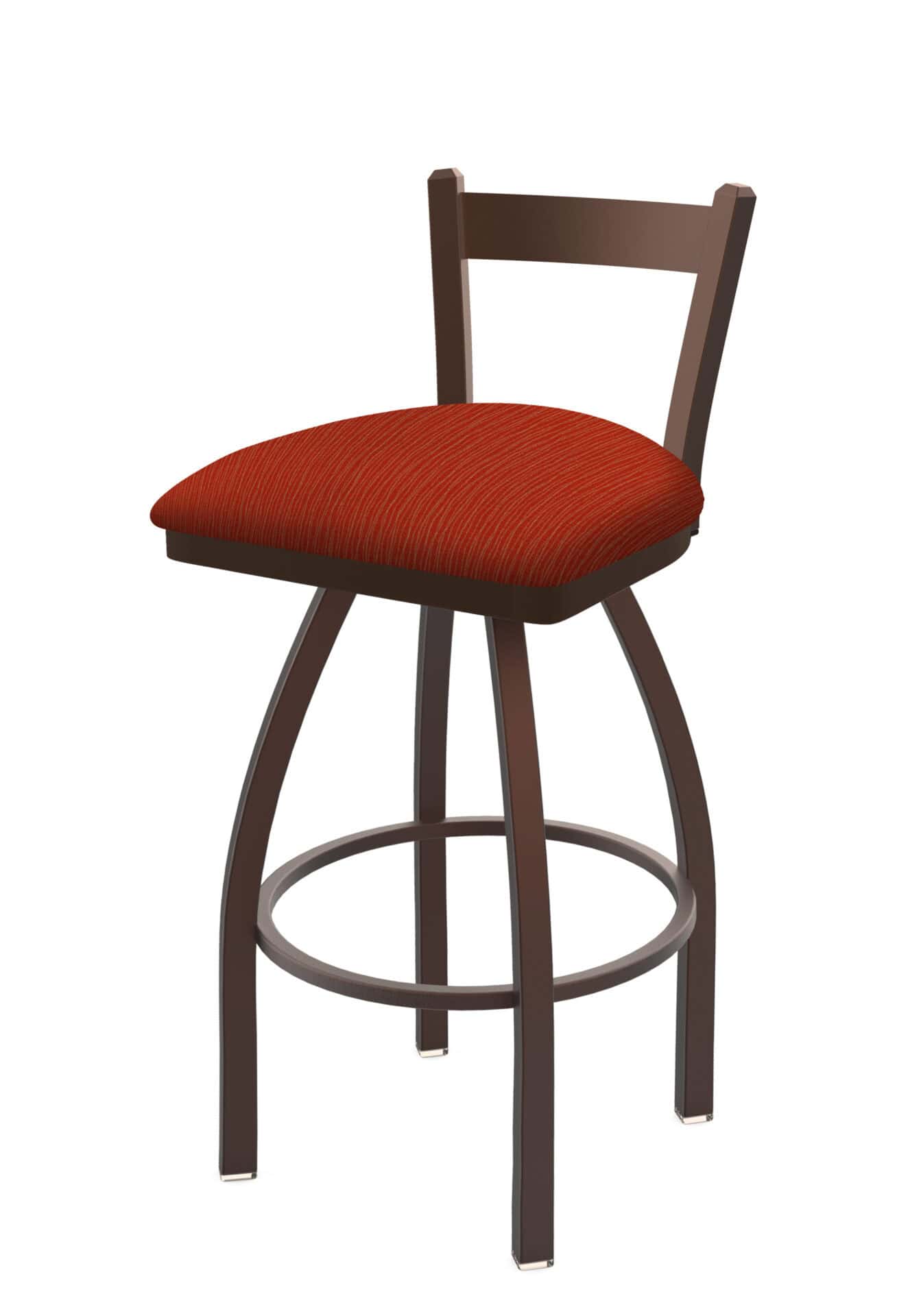This 30-Inch Low Single Slat Back Bar Stool combines contemporary design with robust construction, making it an ideal choice for completing your bar or dining area. It provides ample support while being able to tuck neatly under a counter or table. The steel frame ensures durability, while the upholstered seat offers exceptional comfort.