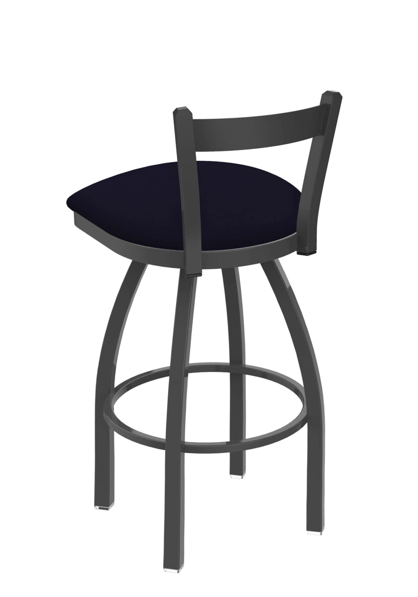 The frame is constructed from commercial-quality, 16-gauge steel, ensuring strength and stability. The powder-coated finish resists chips and scratches, maintaining a long-lasting, rich appearance. The generously upholstered seat provides exceptional comfort, making this bar stool a stylish and practical addition to any space. The stool also features a 52 ball bearing swivel mechanism.