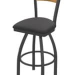 This 30-Inch Medium Stained Medium Wood Keyhole Back Bar Stool adds a touch of class and comfort to any bar or dining area. This swivel bar stool features a stylish wood back with a medium finish, a durable steel frame, and a comfortable, padded seat. Enjoy its lasting quality and rich appearance for years to come.