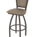 Enjoy the enhanced design and comfort of the padded, upholstered back. Customize your seat with a wide selection of vinyl and fabric options to match your decor. The swivel is powder coated with stainless steel ball bearings for smooth and consistent rotation.