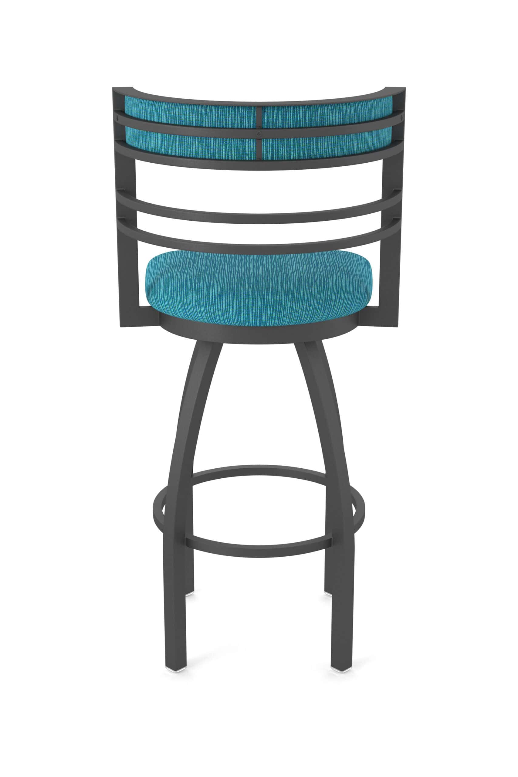 This bar stool is constructed with a heavy-duty steel frame and a comfortable, high-density foam cushion. The powder-coated finish ensures lasting beauty, while the swivel mechanism provides ease of movement. Customize your stool with a variety of fabric and vinyl options to match your décor.
