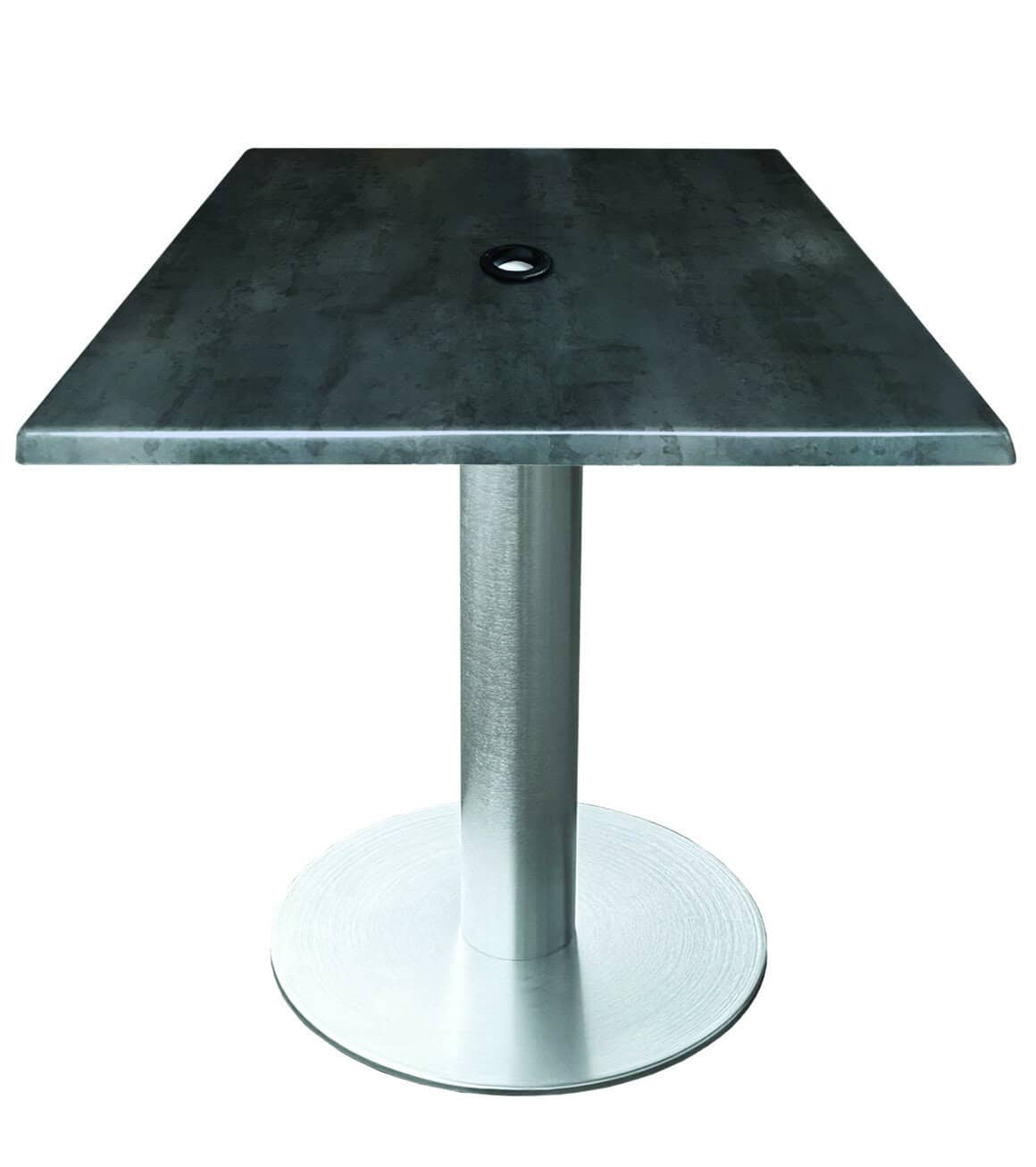 The EnduroTop table top requires minimal upkeep, needing only a simple wipe with a wet cloth or mild detergent to remove spills, burns, or stains from liquids, foods, or other substances. The weather-proof, impact-resistant, and scratch-resistant qualities of the EnduroTop make it ideal for any environment. The OD219 table base features a high-grade aluminum column and an aluminum-clad cast iron base that provides excellent all-weather performance. The base can house up to a 2” diameter umbrella pole, and adjustable feet protect all types of flooring.
