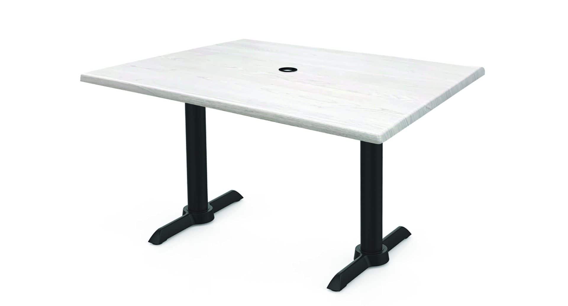 Enjoy the benefits of a table that is resistant to all types of weather conditions and UV rays. The “Enduro Top” is weatherproof, impact-resistant, and scratch-resistant. It’s also stain, scratch, heat, and burn-resistant, making it ideal for both indoor and outdoor use. The top has a 2″ ID umbrella hole pre-installed with a cap for a clean look when not in use. The commercial quality bases feature a UV-resistant, zinc and powder-coated finish on the steel column and cast iron foot.