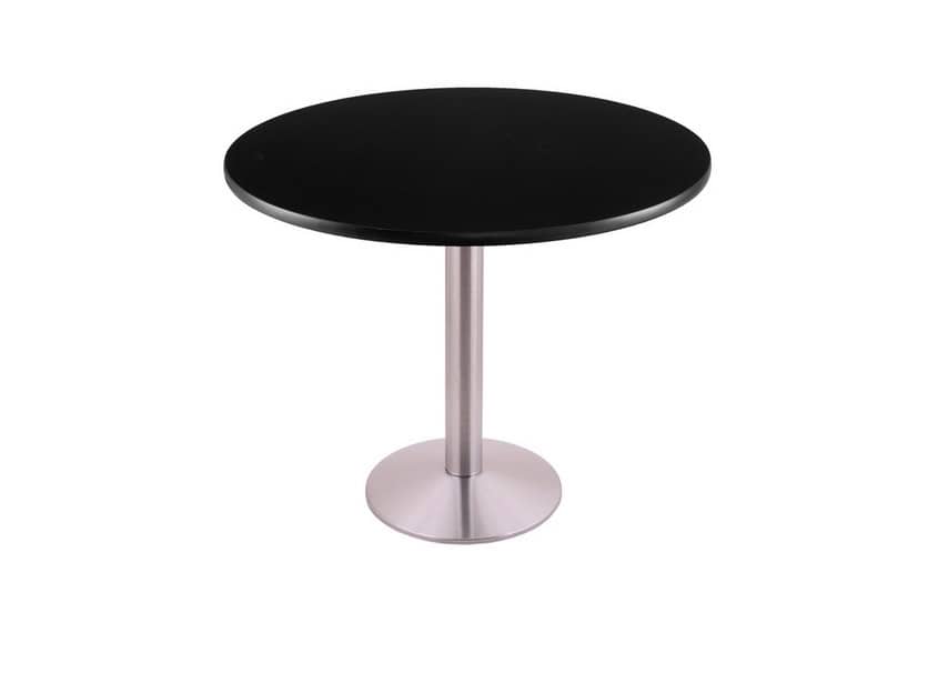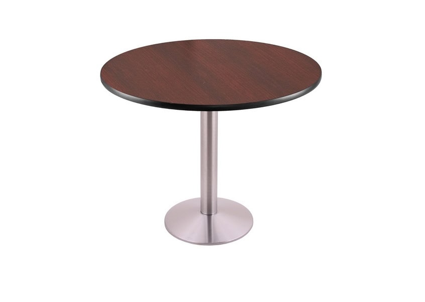- Table Top: 30-inch round reversible laminate (Black/Dark Cherry).