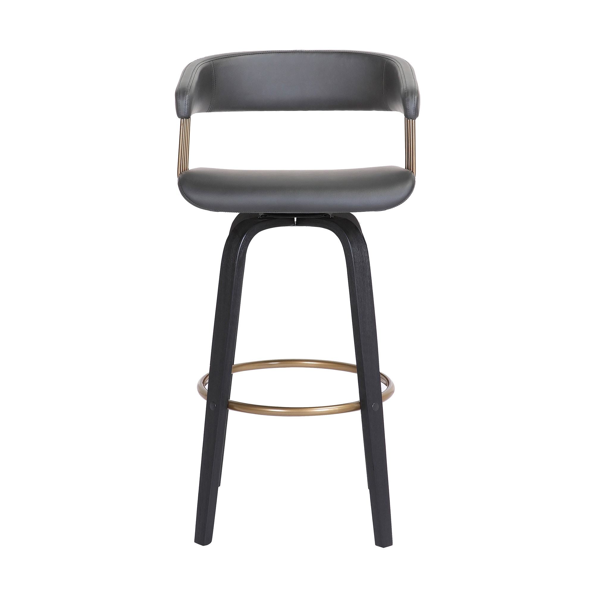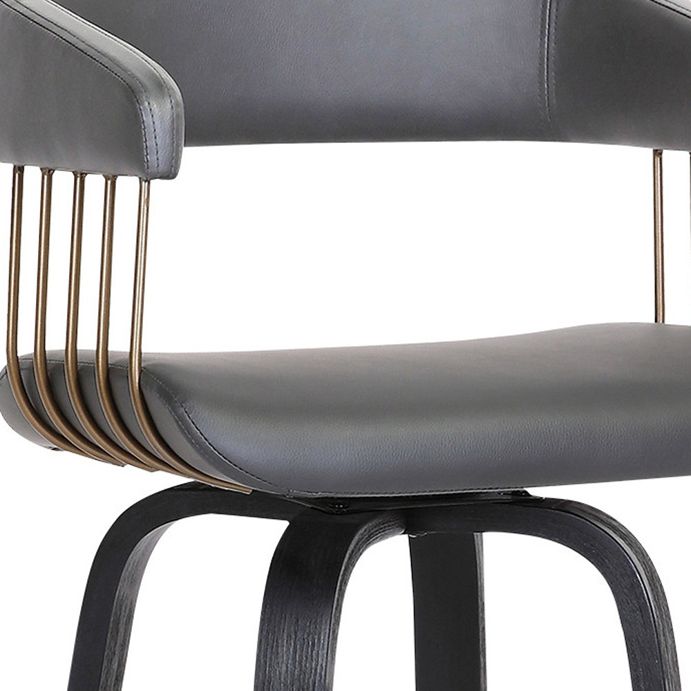 The perfect way to add extra seating to your home, this 31-Inch Gray and Black Faux Leather Swivel Bar Stool will elevate the style and functionality of your space. Featuring a contemporary design, the stool’s gray faux leather seat is a striking contrast to the sturdy black manufactured wood base. A full backrest paired with a bucket-shaped seat ensures both comfort and sophistication. Designed with armrests and a convenient footrest, this stool provides maximum relaxation and support. Its bar height and durable construction make it an excellent choice for casual gatherings or solo lounging.