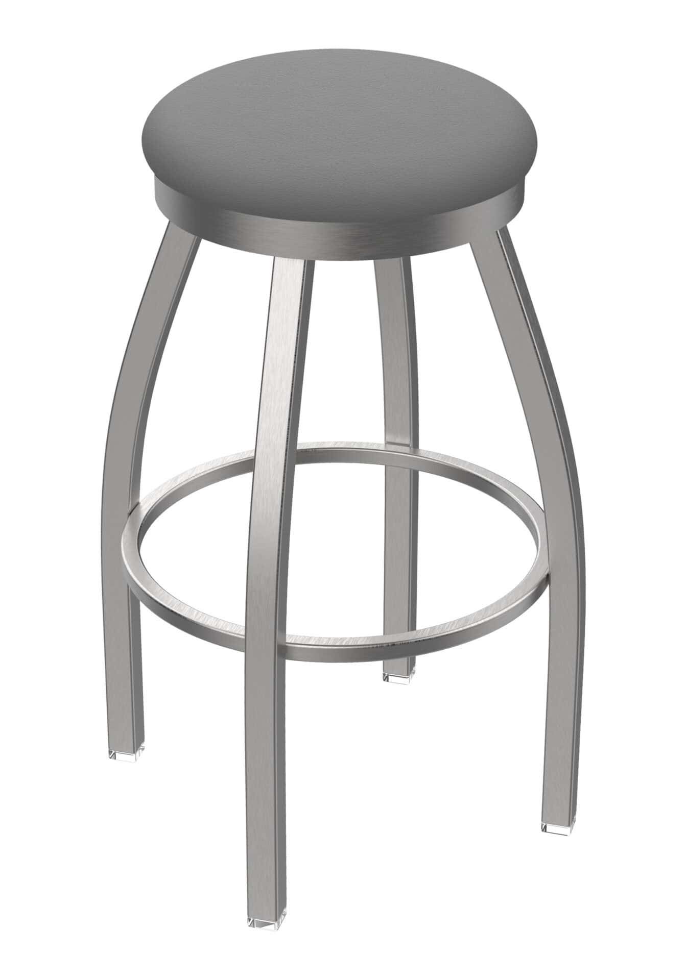 This 36-Inch Backless Bar Stool offers a blend of contemporary design and robust construction, perfect for elevating your bar area. It features a stainless steel frame, a comfortable Canter Folkstone Grey seat, and a unique arched-leg base. The seat ring conceals the swivel, providing a clean, seamless appearance.