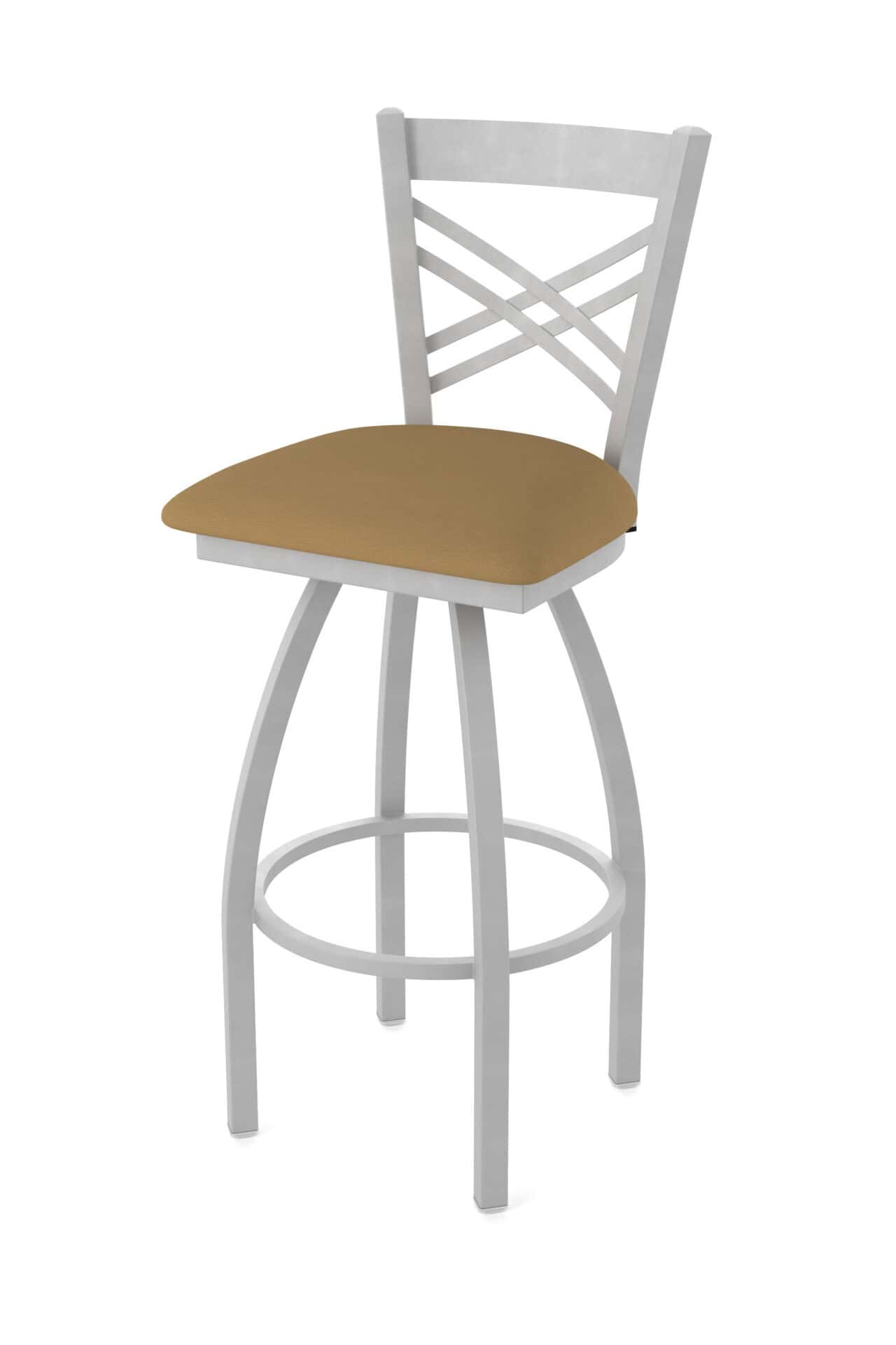 Looking for a bar stool that combines style, comfort, and durability? This 36-Inch Cross Back Bar Stool is perfect for completing your bar or dining area. It features a sturdy steel frame with an anodized nickel finish, a canter saddle seat, and a single-ring base, making it both visually appealing and incredibly comfortable. Enjoy superior back support and exceptional comfort for hours on end!