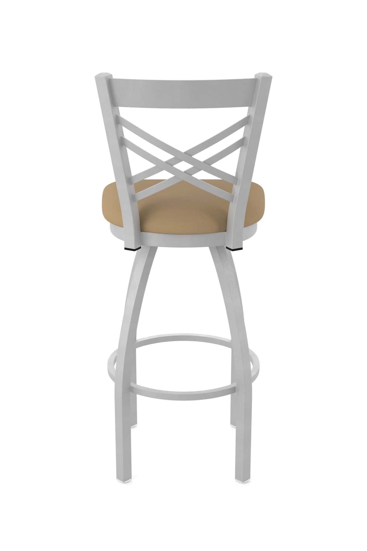 Elevate your bar area with the timeless elegance of this 36-Inch Cross Back Bar Stool. Designed for both comfort and durability, this stool features a robust steel frame with an anodized nickel finish, a comfortably padded Canter Sand seat, and a sturdy single-ring base. Enjoy superior back support and a smooth swivel, making it the perfect addition to your home bar.