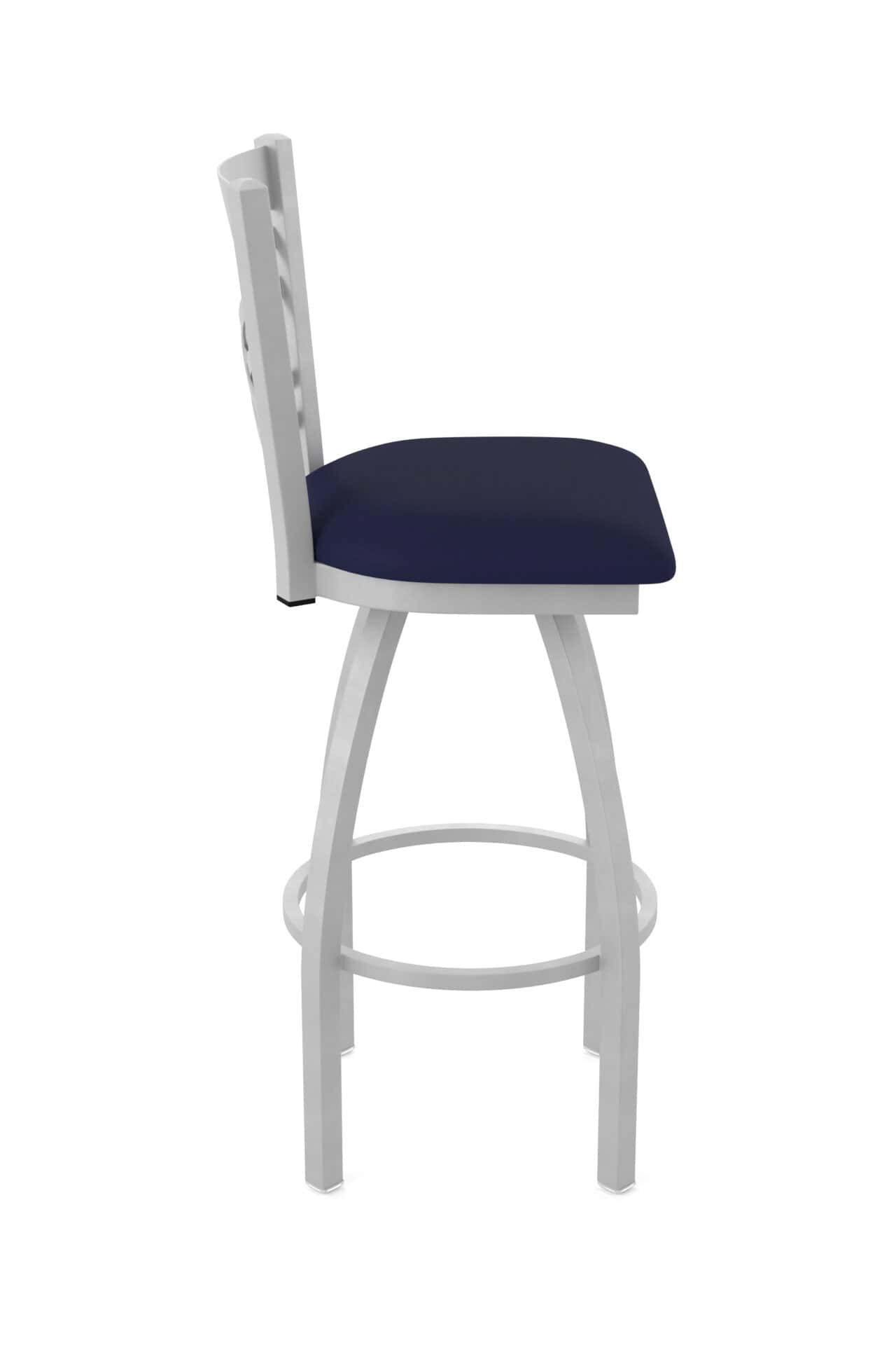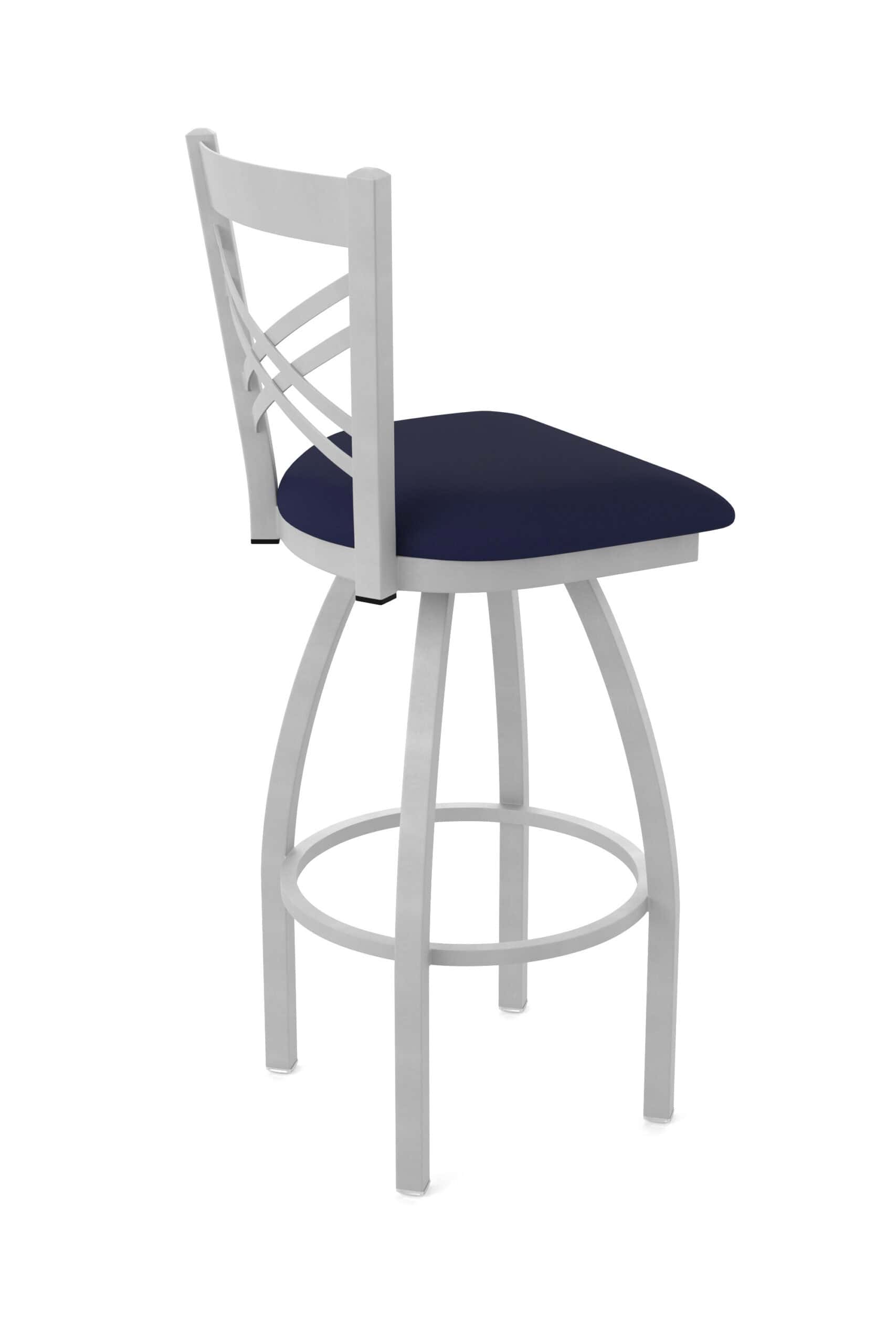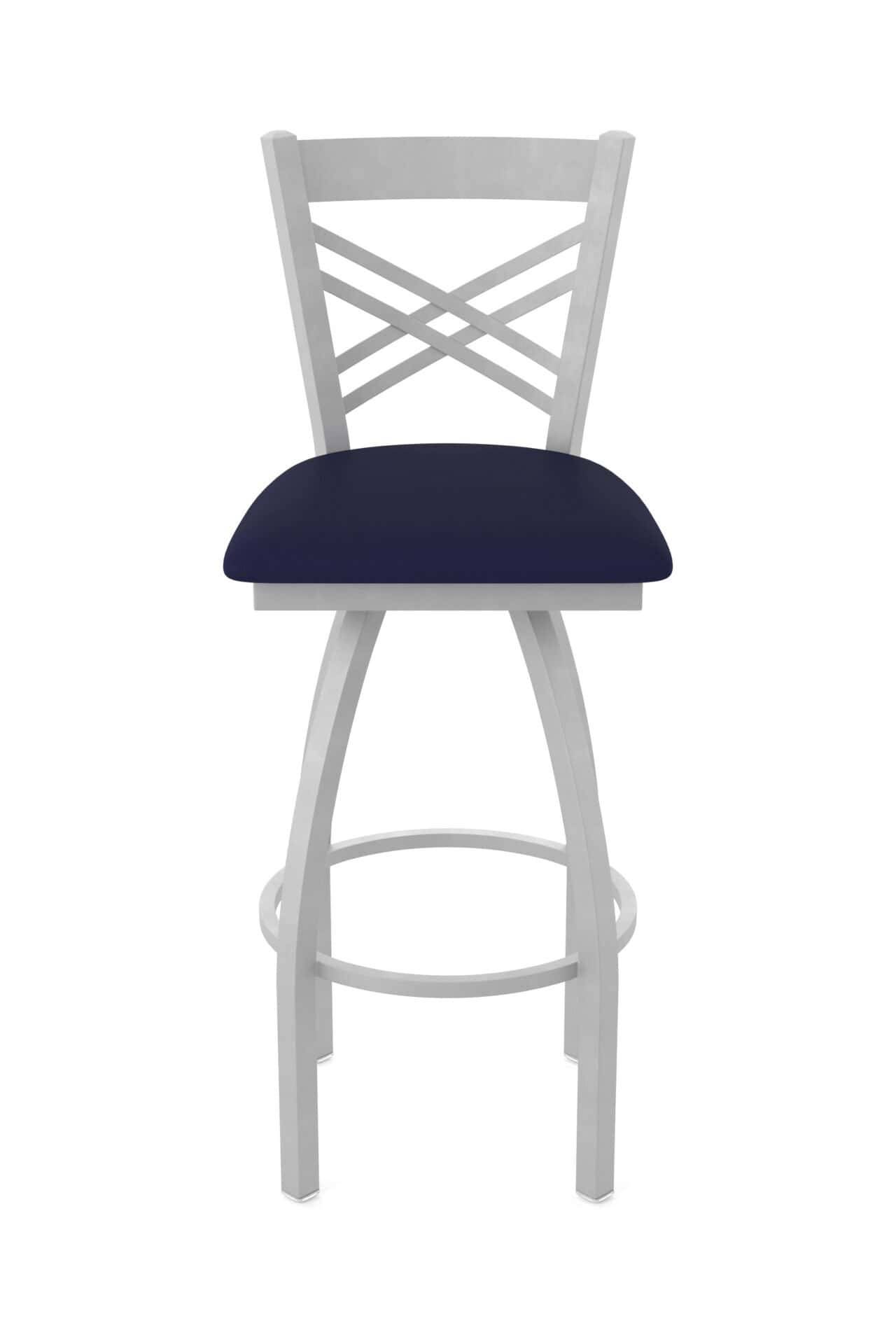 This 36-Inch Cross Back Bar Stool combines classic design with exceptional durability. Featuring a robust steel frame with an anodized nickel finish, a comfortable Canter Twilight vinyl seat, and a stable single-ring base, this stool is perfect for completing your bar or dining area. Enjoy superior comfort and timeless style with this meticulously crafted seating solution.