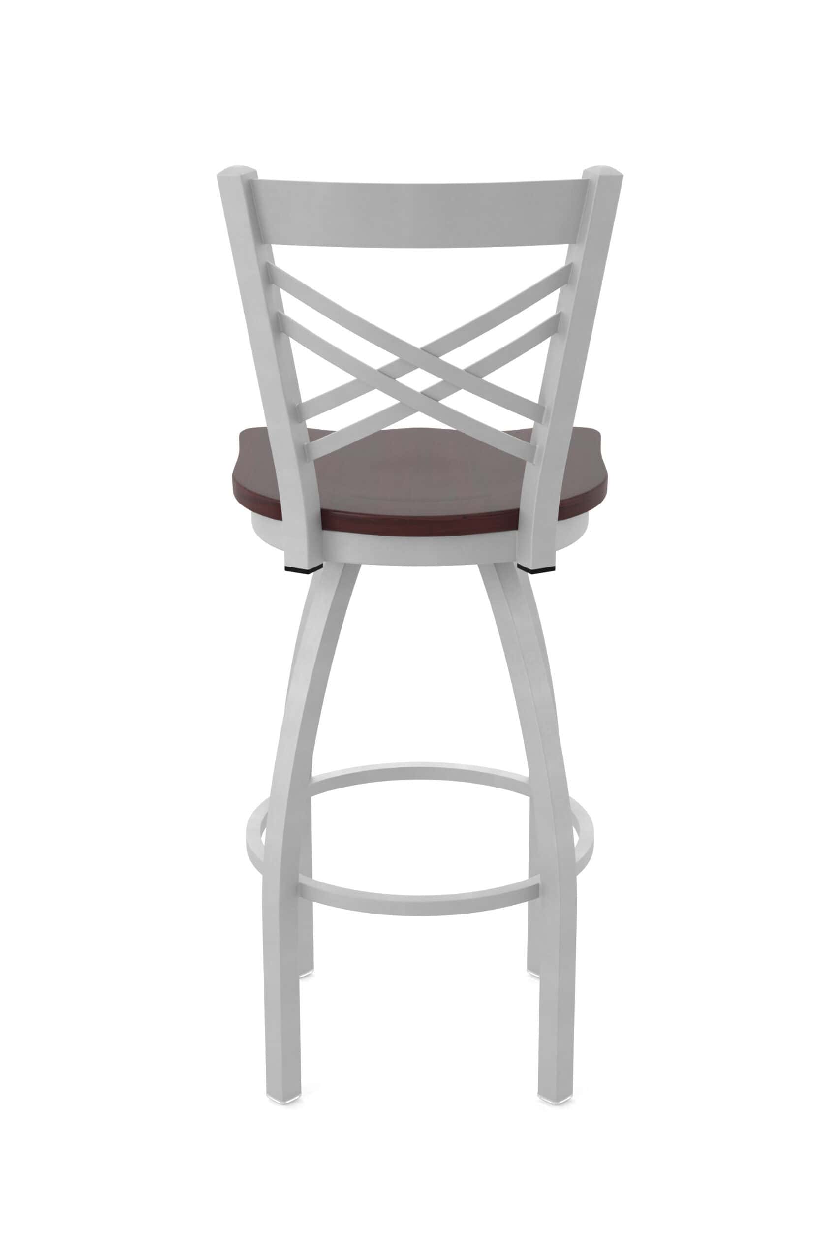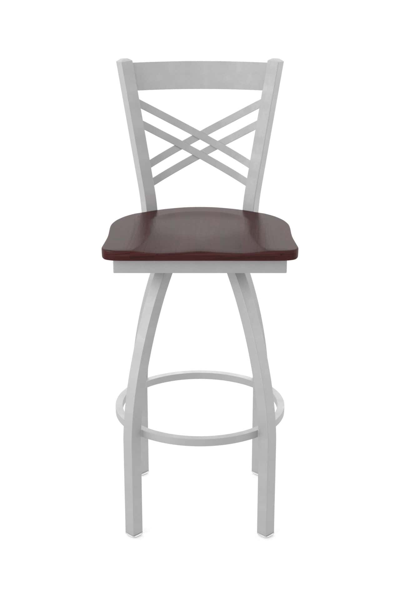 This 36-Inch Cross Back Bar Stool combines classic style with robust construction, making it a perfect addition to any bar or dining area. Enjoy exceptional comfort and timeless design with this meticulously crafted piece. The anodized nickel finish and dark cherry maple seat add a touch of sophistication to your space. This stool is built to last, offering both style and durability.